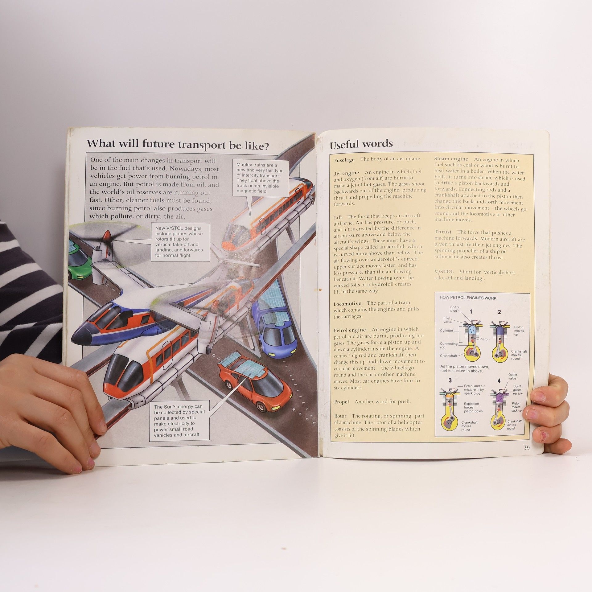 Questions and answers address the many ways in which humans move from place to place, examining airplanes, cars, trains, bicycles, and other forms of transportation.
