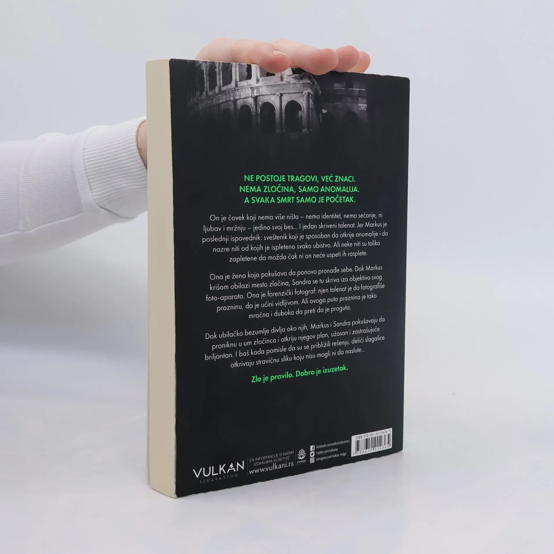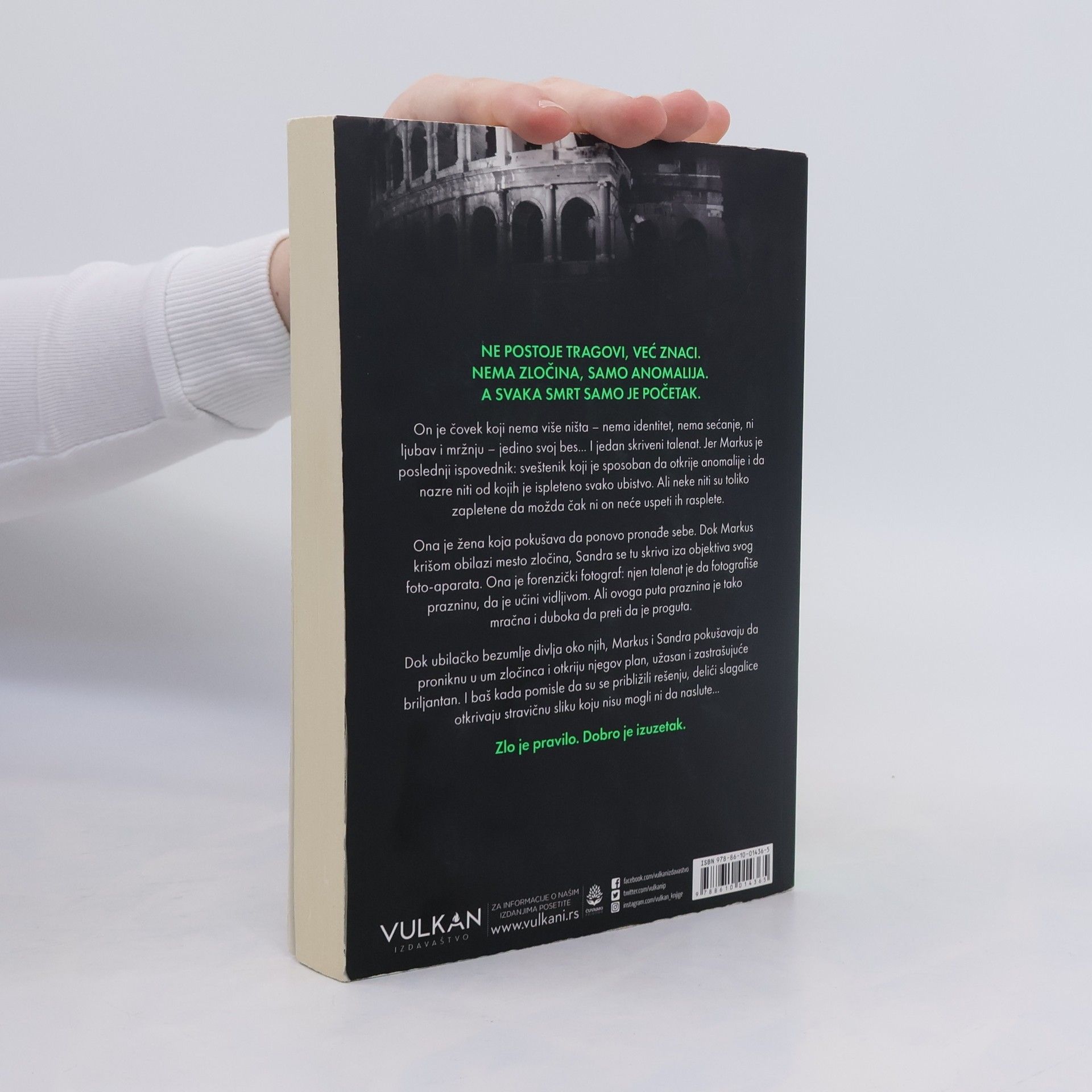 Ne postoje tragovi, već znaci. Nema zločina, samo anomalija. A svaka smrt samo je početak. On je čovek koji nema više ništa – nema identitet, nema sećanje, ni ljubav i mržnju – jedino svoj bes... I jedan skriveni talenat. Jer Markus je poslednji ispovednik: sveštenik koji je sposoban da otkrije anomalije i da nazre niti od kojih je ispleteno svako ubistvo. Ali neke niti su toliko zapletene da možda čak ni on neće uspeti ih rasplete. Ona je žena koja pokušava da ponovo pronađe sebe. Dok Markus krišom obilazi mesto zločina, Sandra se tu skriva iza objektiva svog foto-aparata. Ona je forenzički fotograf: njen talenat je da fotografiše prazninu, da je učini vidljivom. Ali ovoga puta praznina je tako mračna i duboka da preti da je proguta. Dok ubilačko bezumlje divlja oko njih, Markus i Sandra pokušavaju da proniknu u um zločinca i otkriju njegov plan, užasan i zastrašujuće briljantan. I baš kada pomisle da su se približili rešenju, delići slagalice otkrivaju stravičnu sliku koju nisu mogli ni da naslute... Zlo je pravilo. Dobro je izuzetak.