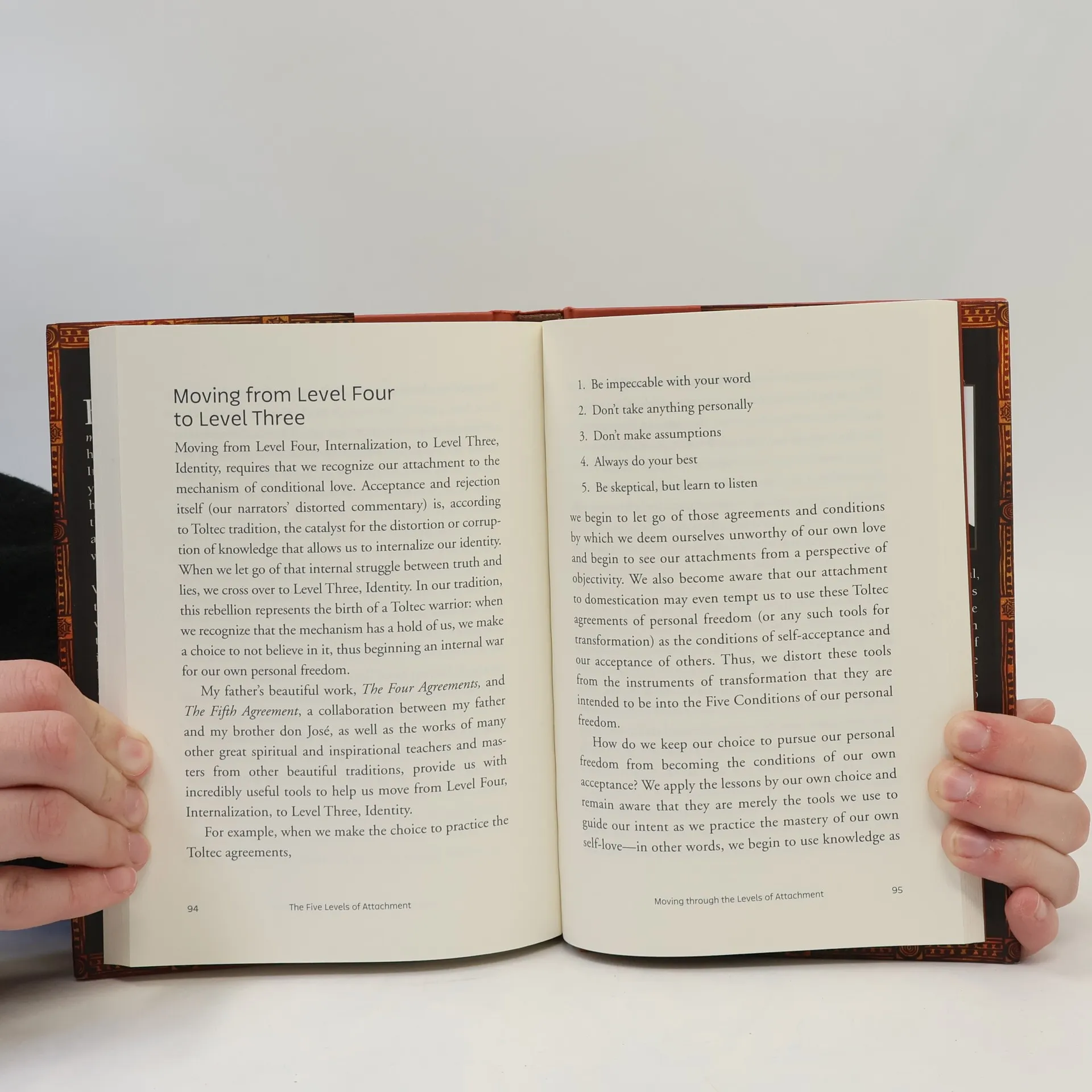 This is a book that picks up where The Four Agreements left off. Building on the principles found in his father's bestselling book, Ruiz, Jr. explores the ways in which we attach ourselves inappropriately to beliefs and the world. Ruiz explores the five levels of attachment that cause suffering in our lives. The levels are: Authentic SelfPreferenceIdentificationInternalizationFanaticism Accessible and practical, Ruiz's exploration invites us to look at our own lives and see how an unhealthy level of attachment can keep us trapped in a psychological and spiritual fog. He then invites us to reclaim our true freedom by cultivating awareness, detaching, and discovering our true selves.