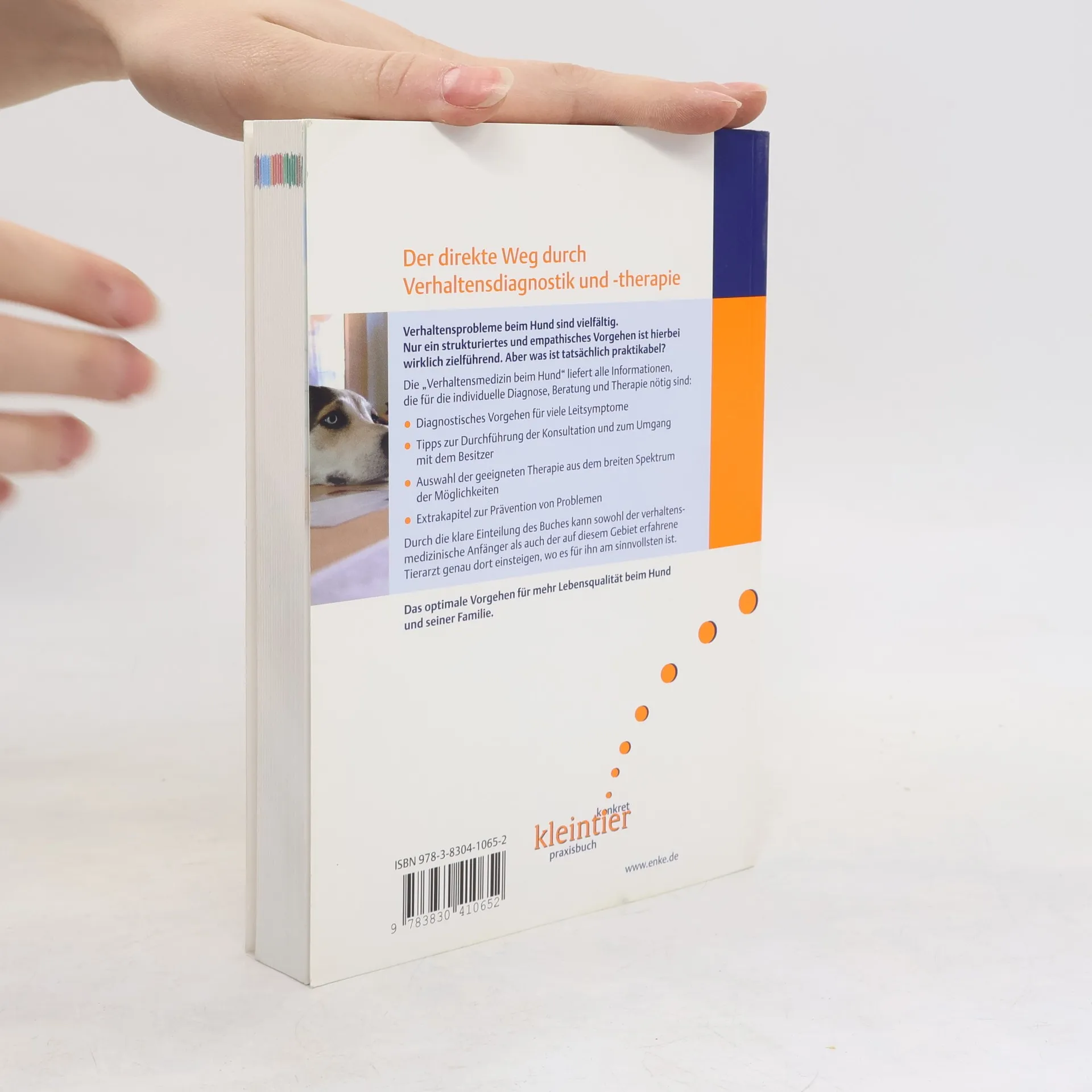 Verhaltensprobleme beim Hund sind vielfältig - ein strukturiertes und einfühlsames Vorgehen ist hierbei unerlässlich. Dieses Buch bietet Ihnen die zielführenden Anleitungen: - therapeutische Konsultation und verhaltensmedizinische Untersuchungen - genaue diagnostische Kriterien für Verhaltensstörungen - lösungsorientiertes Vorgehen anhand von diversen Leitsymptomen - Therapieanleitungen für Medikation, komplementäre Ansätze, Verhaltenstherapie und Prävention. Neu in der 2. Auflage: - alle Inhalte sind komplett überarbeitet und aktualisiert - Tipps zum stressfreien Handling in der Praxis - Erziehung, Training, Verhaltenstherapie oder Verhaltensmedizin? - ausführlicher Wesenstest.
