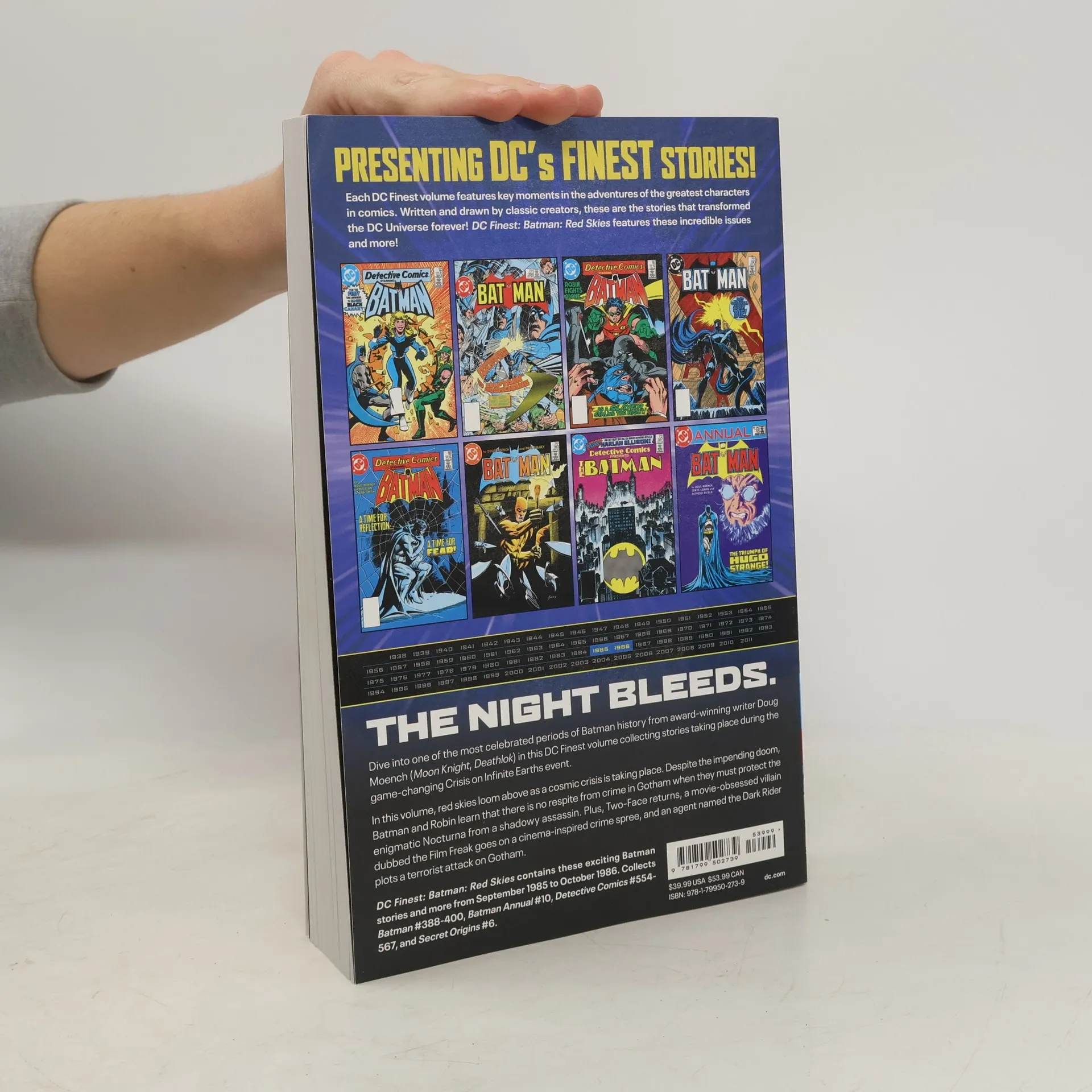 From deadly new villains to apocalyptic skies--Batman's greatest challenges await in this definitive DC Finest collection! From the dark alleys of Gotham to the red skies of the Crisis on Infinite Earths, DC Finest: Batman: Red Skies presents some of the most compelling stories in the Dark Knight's history. This collection spans the debut of Black Mask, Hugo Strange's master plans, and Batman's high-stakes confrontations with Two-Face, Catwoman, and the False Face Society. Through it all, Batman must navigate the line between his personal losses and his unyielding commitment to justice. This collection showcases the depth and evolution of Batman's character during a pivotal era in his history. Brimming with action, mystery, and unforgettable storytelling, Red Skies is a cornerstone of the DC Finest series, celebrating the timeless appeal of the Dark Knight. DC Finest continues, a major publishing initiative presenting comprehensive collections of the most in-demand and celebrated periods in DC Comics history, spanning genres, characters, and eras! This volume collects stories from Secret Origins #6, Batman Annual #10, Batman #386-400, and Detective Comics #553-567.