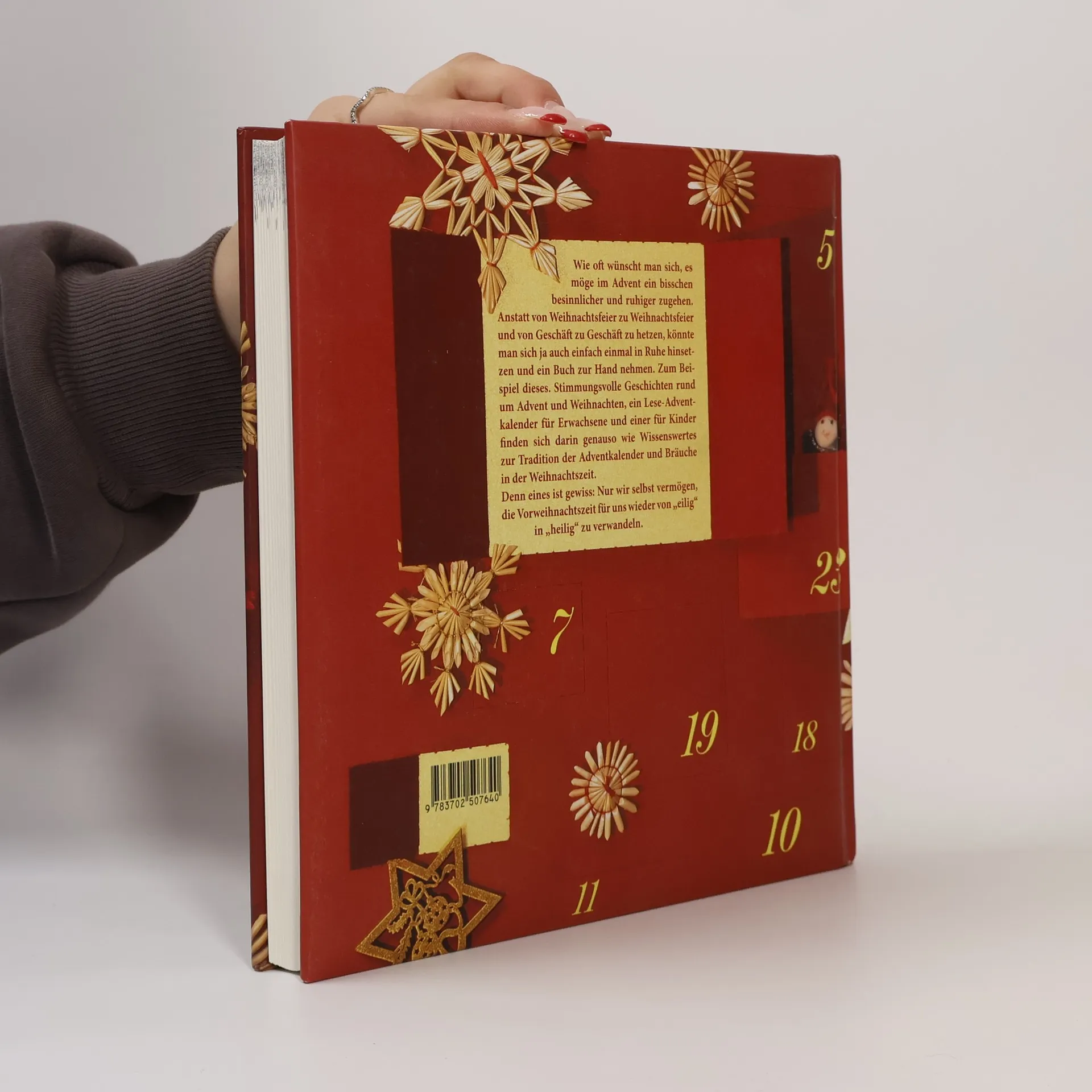 Dieses Buch kann dazu beitragen, die ganze Familie in Weihnachtsstimmung zu versetzen. Märchen sind Nahrung für die Seele, und diese Seelennahrung wünschen sich viele vor allem rund um Weihnachten. Doch nicht nur Märchen sind in diesem Weihnachtsbuch enthalten. Im Sachbuchteil werden die besonderen Tage im Advent beschrieben, die über hundertjährige Geschichte des Adventkalenders wird erzählt und auch die Adventkranz-Tradition wird „beleuchtet“. Herzstück des Buches ist ein Märchen-Adventkalender für Erwachsene mit 24 Geschichten zum Vor- und Selberlesen. Für Kinder gibt es einen eigenen Geschichten-Adventkalender, der das Christkind jeden Tag ein Stückchen näher bringt. Ein eigenes Märchenkapitel widmet sich dem Heiligen Abend. Und die Autorin hat sich auch Gedanken darüber gemacht, wie es nach dem Fest der Feste weitergeht. Ein Buch rund um Weihnachten, das es versteht, Brauchtum und Moderne zu vereinen. Ein Buch, das Weihnachtsstimmung verbreitet und gleichzeitig zum Ruhigwerden einlädt.