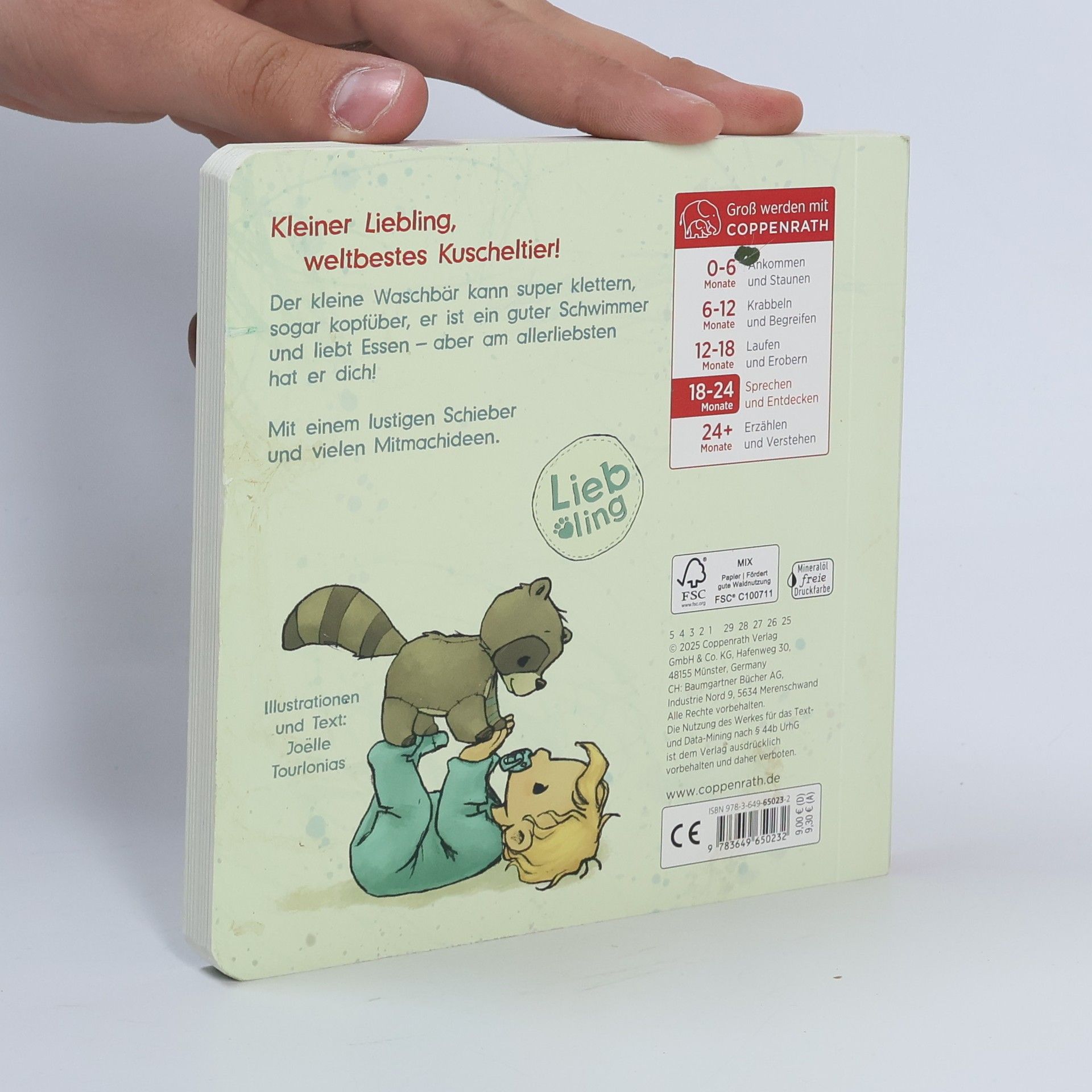 Perfektes Spielbuch für die Kleinsten zum Lieblingstier Waschbär! Interaktiver Schieber für noch mehr Spaß Zauberhafte Illustrationen und erzählt von Joëlle Tourlonias Ideal zum Vorlesen und gemeinsamen Entdecken Spielerisches Lernen rund um Waschbären für Kinder ab 18 Monaten Ein interaktives Kinderbuch zum Verlieben! Mit spannenden Fakten über Waschbären, liebevollen Illustrationen und einem lustigen Schiebe-Element lädt dieses Buch zum Vorlesen und Mitmachen ein. Perfekt für kleine Tierfreunde, die spielerisch mehr über ihre Lieblingstier Waschbär lernen möchten.