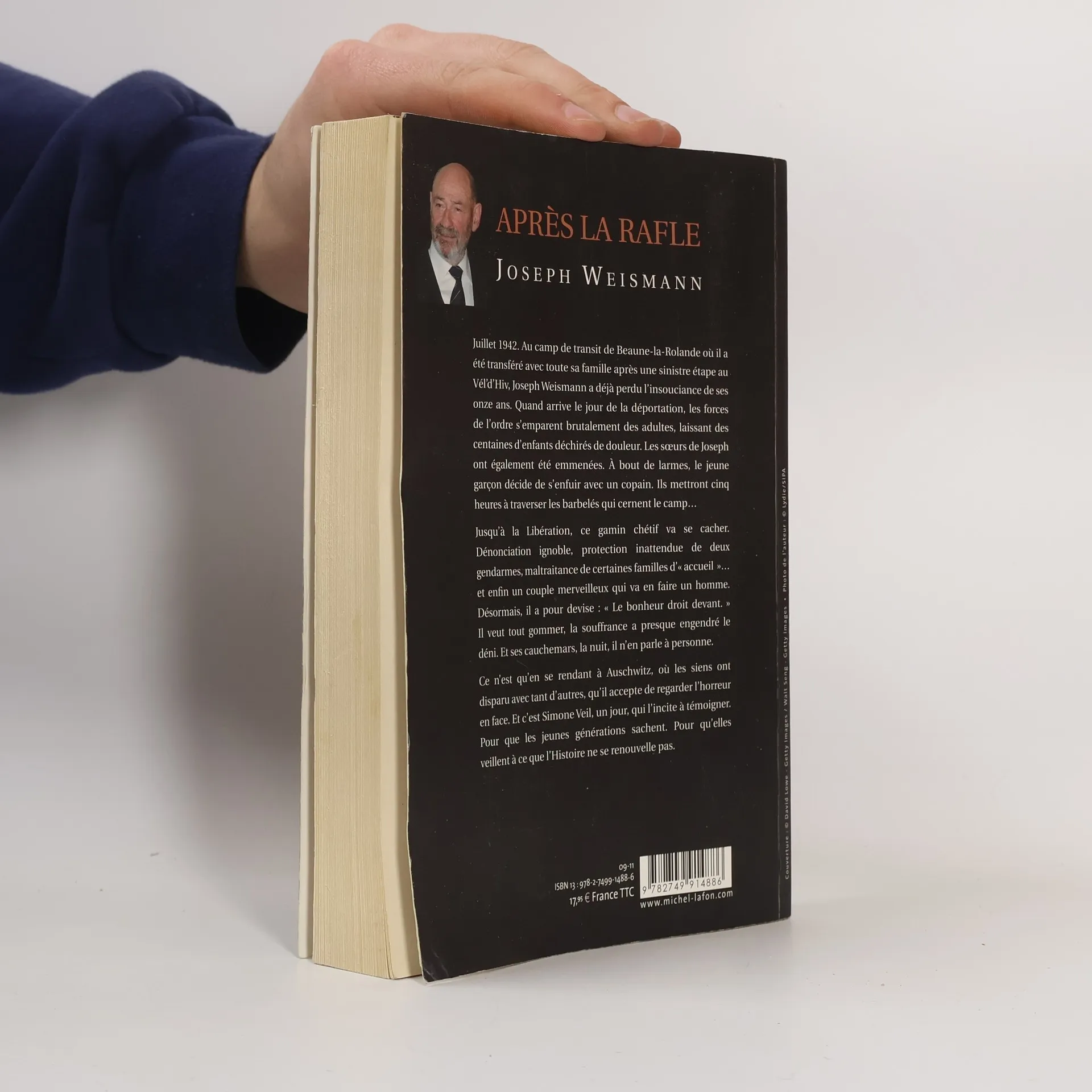 Juillet 1942. Au camp de transit de Beaune-la-Rolande où il a été transféré avec toute sa famille après une sinistre étape au Vél'd'Hiv, Joseph Weismann a déjà perdu l'insouciance de ses onze ans. Quand arrive le jour de la déportation, les forces de l'ordre s'emparent brutalement des adultes, laissant des centaines d'enfants déchirés de douleur. Les soeurs de Joseph ont également été emmenées. A bout de larmes, le jeune garçon décide de s'enfuir avec un copain. Ils mettront cinq heures à traverser les barbelés qui cernent le camp... Jusqu'à la Libération, ce gamin chétif va se cacher. Dénonciation ignoble, protection inattendue de deux gendarmes, maltraitance de certaines familles d'"accueil" et enfin un couple merveilleux qui va en faire un homme. Désormais, il a pour devise : "Le bonheur droit devant". Il veut tout gommer, la souffrance a presque engendré le déni. Et ses cauchemars, la nuit, il n'en parle à personne. Ce n'est qu'en se rendant à Auschwitz, où les siens ont disparu avec tant d'autres, qu'il accepte de regarder l'horreur en face. Et c'est Simone Veil, un jour, qui l'incite à témoigner. Pour que les jeunes générations sachent. Pour qu'elles veillent à ce que l'Histoire ne se renouvelle pas.
