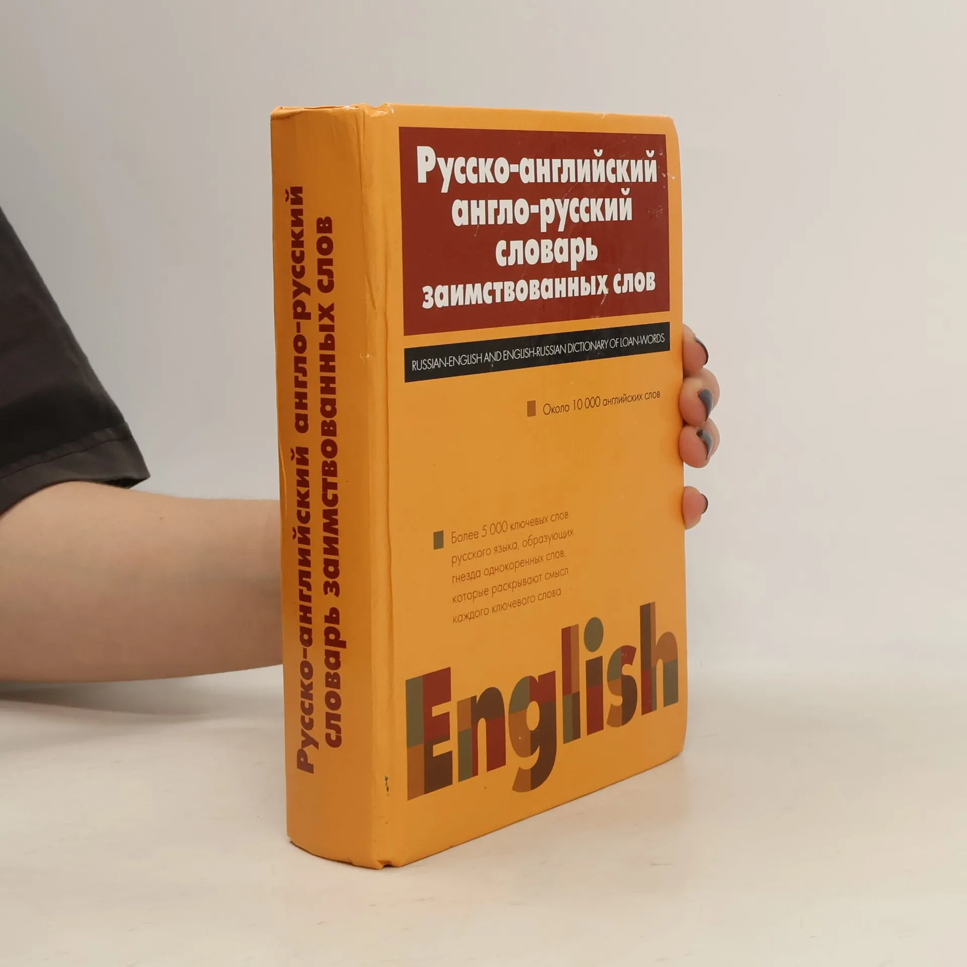 Contains about 5,000 Russian words adopted from English. and about 10,000 English words