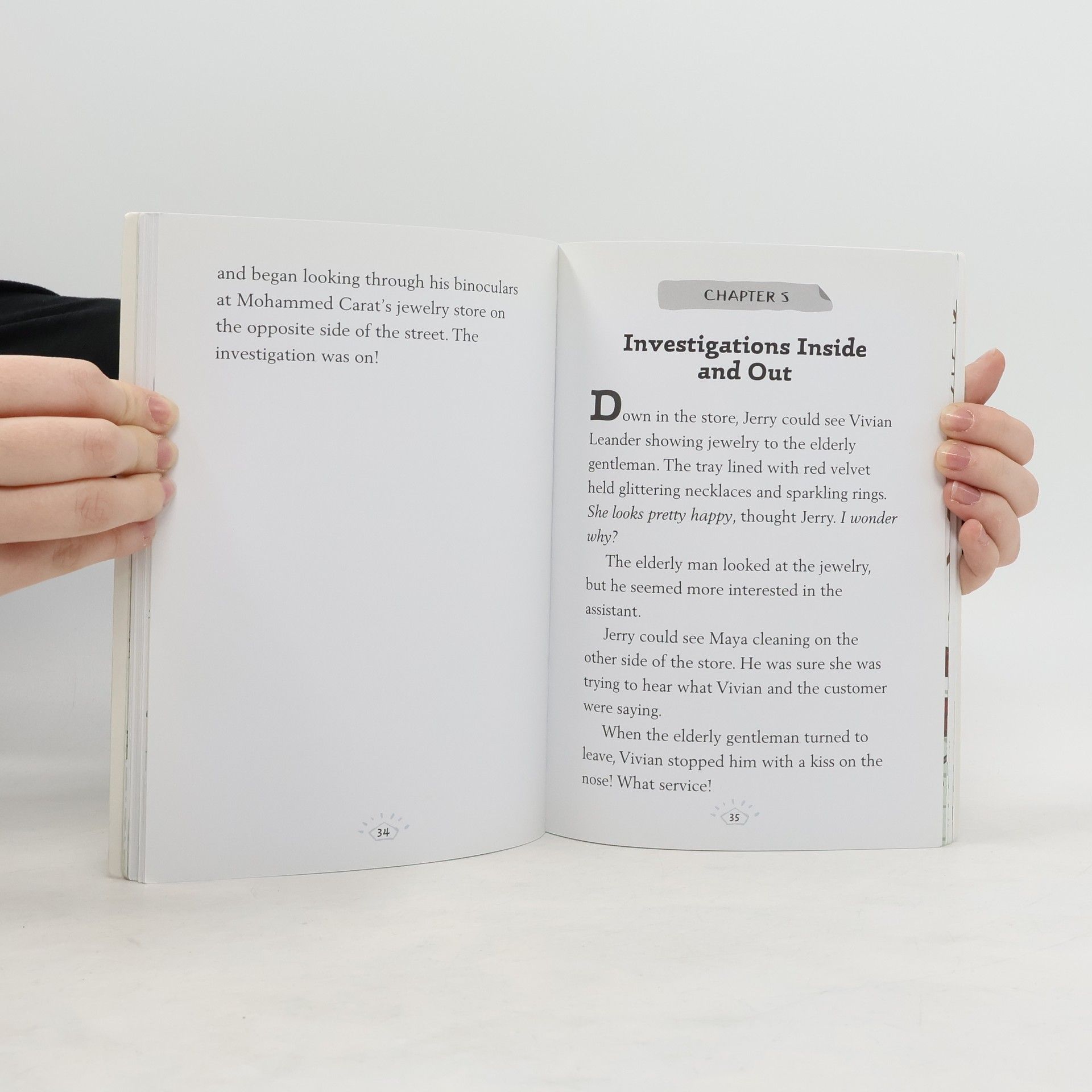 Somebody is stealing diamonds from the jeweler Mohammed Carat! It looks like the culprit is someone on his staff, but who? Is it Luke Smith, the recently hired fitness fanatic with a taste for the finer things in life? It surely can't be Vivian Leander, the loyal shop assistant who is now short of money ... The police in the little town of Valleby are stuck, so they contact young detectives Jerry and Maya, classmates who run their own detective agency. Will Jerry and Maya be able to use their detective skills to find the thief? As they well know, even a tiny clue is worth its weight in gold