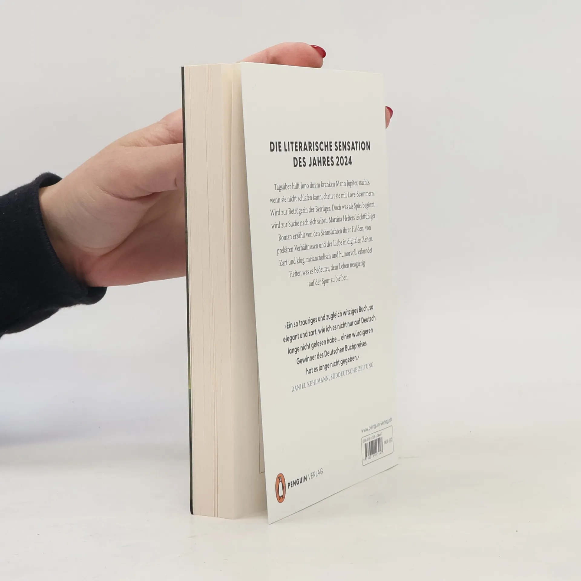 <b>»Ein so trauriges und zugleich witziges Buch, so elegant und zart, wie ich es nicht nur auf Deutsch lange nicht gelesen habe, ein Roman über Krankheit und Alter und Einsamkeit und das Internet und die Schönheit der Fiktionen.« Daniel Kehlmann</b> Tagsüber hilft Juno ihrem schwerkranken Mann Jupiter, den Alltag zu meistern. Außerdem ist sie Künstlerin, tanzt und spielt Theater. Und nachts, wenn sie wieder einmal nicht schlafen kann, flüchtet sie ins Internet und chattet mit Love-Scammern. Sie spielt Spielchen mit Männern, die sie anlügen, und wird dabei selbst zur Lügnerin. Eines Tages trifft Juno auf Benu, der ihre Behauptungen ebenso durchschaut wie sie seine. Denn belügt man sich beim Lügen nicht zuallererst selbst? Trotz der Entfernung zwischen ihnen entsteht eine Verbindung. – Martina Hefter hat einen berührenden Roman über Bedürfnisse und Sehnsüchte im Leben geschrieben. Und darüber, wie weit man bereit ist, für die Liebe zu gehen. Deutscher Buchpreis 2024 Großer Preis des deutschen Literaturfonds 2024 Wiesbadener Literaturpreis 2024 Nominiert für den Bayerischen Buchpreis 2024 Prix Grand Continent