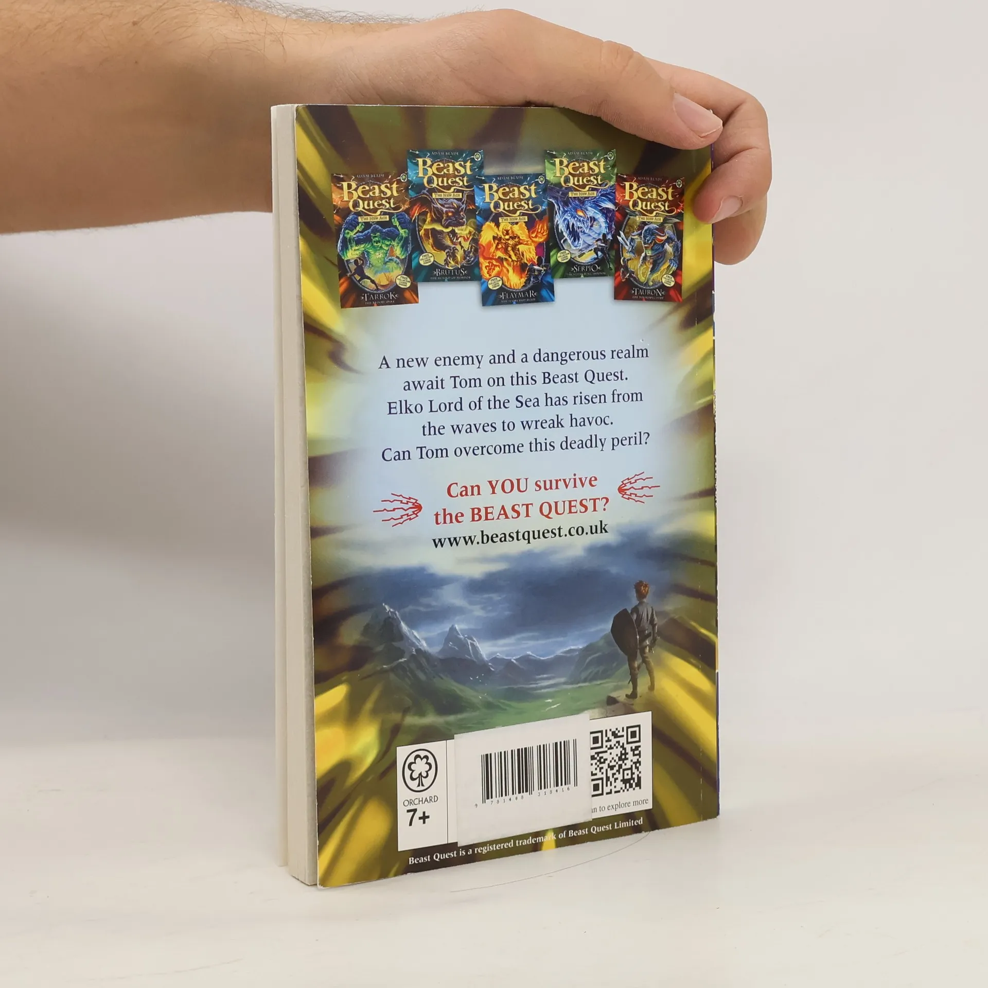 Battle fearsome beasts and fight evil with Tom and Elenna in the bestselling adventure series for boys and girls aged 7 and up. A new evil enemy and dangerous realm await Tom on his new Beast Quest. Elko Lord of the Sea has risen from the waves to wreak havoc. Can Tom overcome this deadly peril? There are SIX thrilling adventures to collect in the Beast Quest: The New Age series: Elko Lord of the Sea; Tarrok the Blood Spike; Brutus the Hound of Horror; Flaymar the Scorched Blaze; Serpio the Slithering Shadow; Tauron the Pounding Fury. If you like Beast Quest, check out Adam Blade's other series: Team Hero, Sea Quest and Beast Quest: New Blood!
