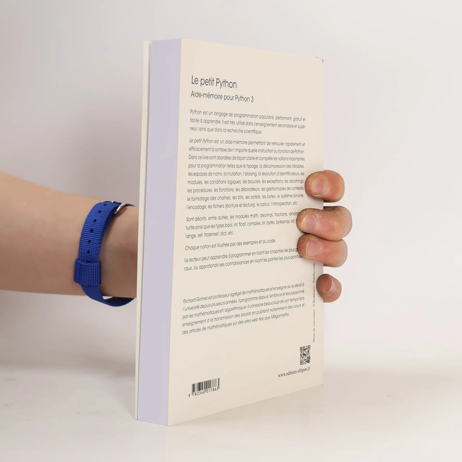 Python est un langage de programmation populaire, performant, gratuit et facile à apprendre. Il est très utilisé dans l'enseignement secondaire et supérieur, ainsi que dans la recherche scientifique. Le petit Python est un aide-mémoire permettant de retrouver rapidement et efficacement la syntaxe de n'importe quelle instruction ou fonction de Python. Dans ce livre sont abordées de façon claire et complète les notions importantes pour la programmation telles que le typage, la décompression des itérables, les espaces de noms, la mutation, l'aliasing, la résolution d'identificateurs, les modules, les conditions logiques, les boucles, les exceptions, les docstrings, les procédures, les fonctions, les décorateurs, les gestionnaires de contexte, le formatage des chaînes, les bits, les octets, les bytes, le système binaire, l'encodage, les fichiers (écriture et lecture), le calcul, l'introspection, etc. Sont décrits, entre autres, les modules math, decimal, fractions, random et turtle ainsi que les types bool, int, float, complex, str, bytes, bytearray, list, tuple, range, set, frozenset, dict, etc. Chaque notion est illustrée par des exemples et du code. Le lecteur peut apprendre à programmer en lisant les chapitres les plus généraux, ou approfondir ses connaissances en lisant les parties les plus pointues.