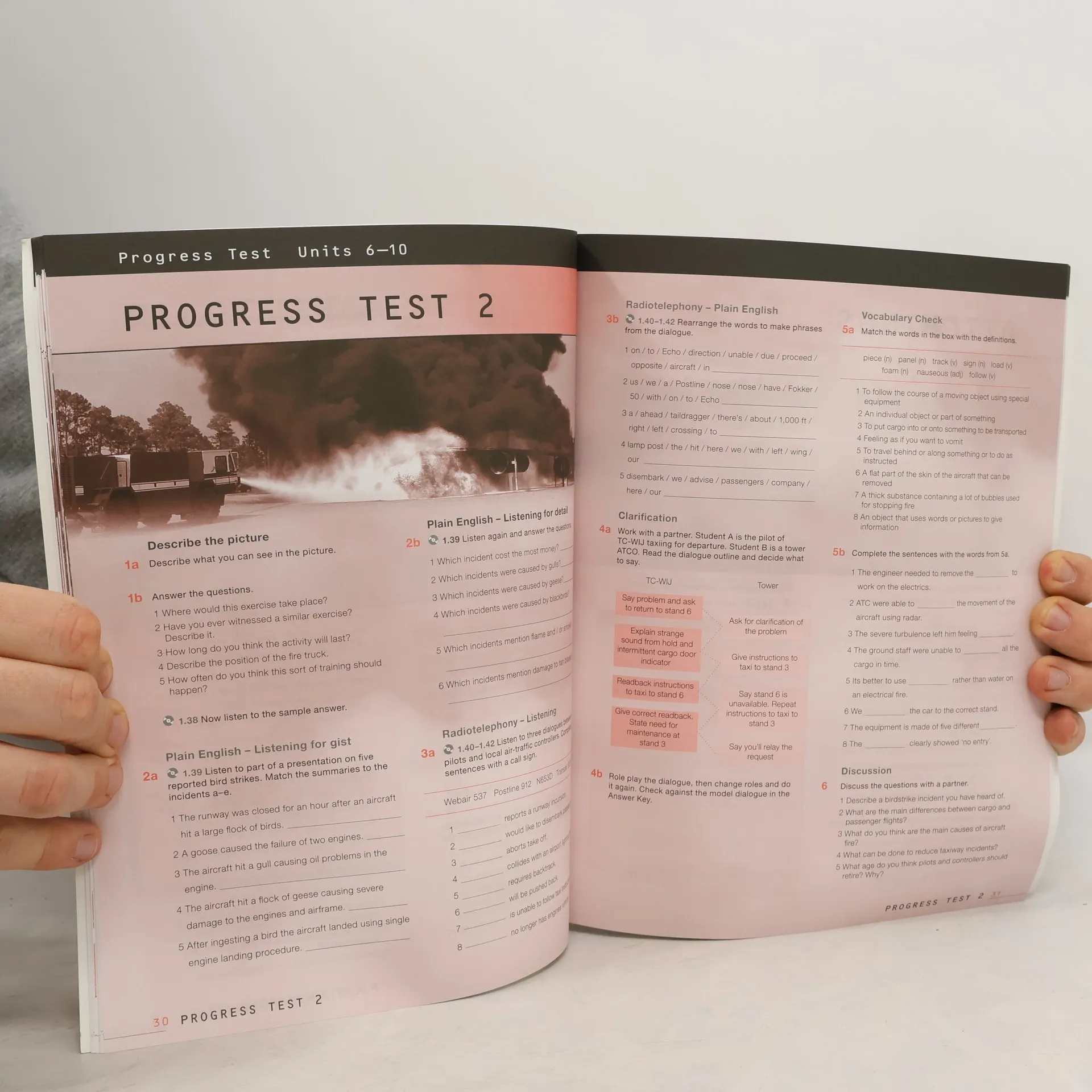A self- study or classroom book and CD package focusing on the topics and language structures required by pilots and air-traffic controllers preparing to gain ICAO level 4 language requirements. The book contains 30 two- page units. Each unit is focussed on a unit topic and contains activities to practise speaking and listening skills as well as activities to develop key vocabulary. Tasks are similar to those commonly found in aviation English exams. Listening exercises use plain English recordings as well as RT exchanges and also feature routine and non-routine situations.