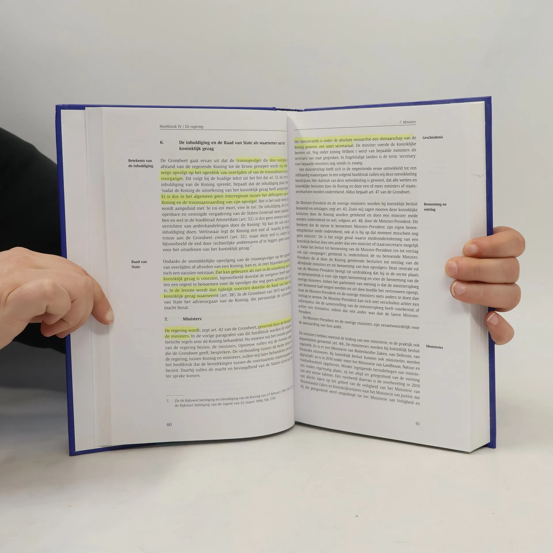 Dit boek biedt een overzicht van de belangrijkste leerstukken van het Nederlandse staatsrecht. De belangrijkste ontwikkelingen die zich daarin de afgelopen jaren hebben voorgedaan, komen in deze 17e druk aan de orde. Zo wordt aandacht besteed aan de grondslagen van het Nederlandse staatsbestel, de verhouding regering-parlement, het proces van wetgeving en grondwetsherziening, rechtspraak en rechtsbescherming, de grondrechten, decentralisatie, de structuur van het Koninkrijk sinds de ingrijpende hervorming van 2010 en de invloed van de Europese integratie op het Nederlandse staatsrecht, in het bijzonder sinds de inwerkingtreding van het Verdrag van Lissabon (2009). Het boek is geschikt als inleidend studieboek in het wetenschappelijk onderwijs en als leerboek in het hoger beroepsonderwijs.