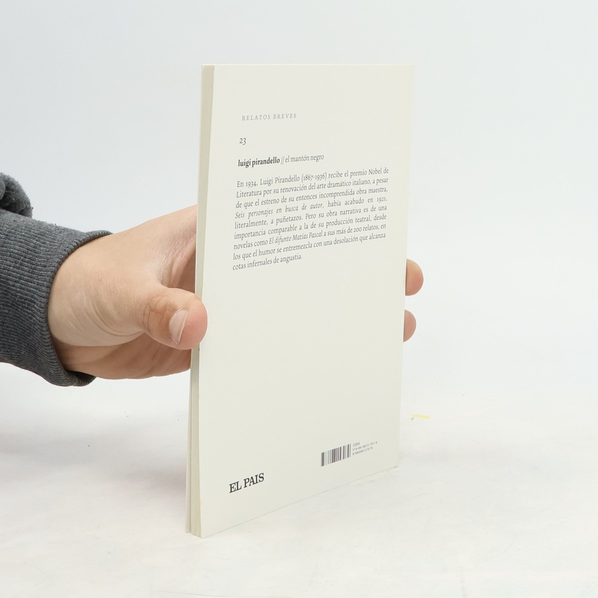 En 1934 Luigi Pirandello recibe el premio Nobel de Literatura por su renovación del teatro italiano. Pero su obra narrativa es de una importancia comparable a la de su producción teatral, desde novelas como "El difunto Matías Pascal" a sus más de 200 relatos, en los que el humor se entremezcla con una desolación que alcanza cotas infernales de angustia.