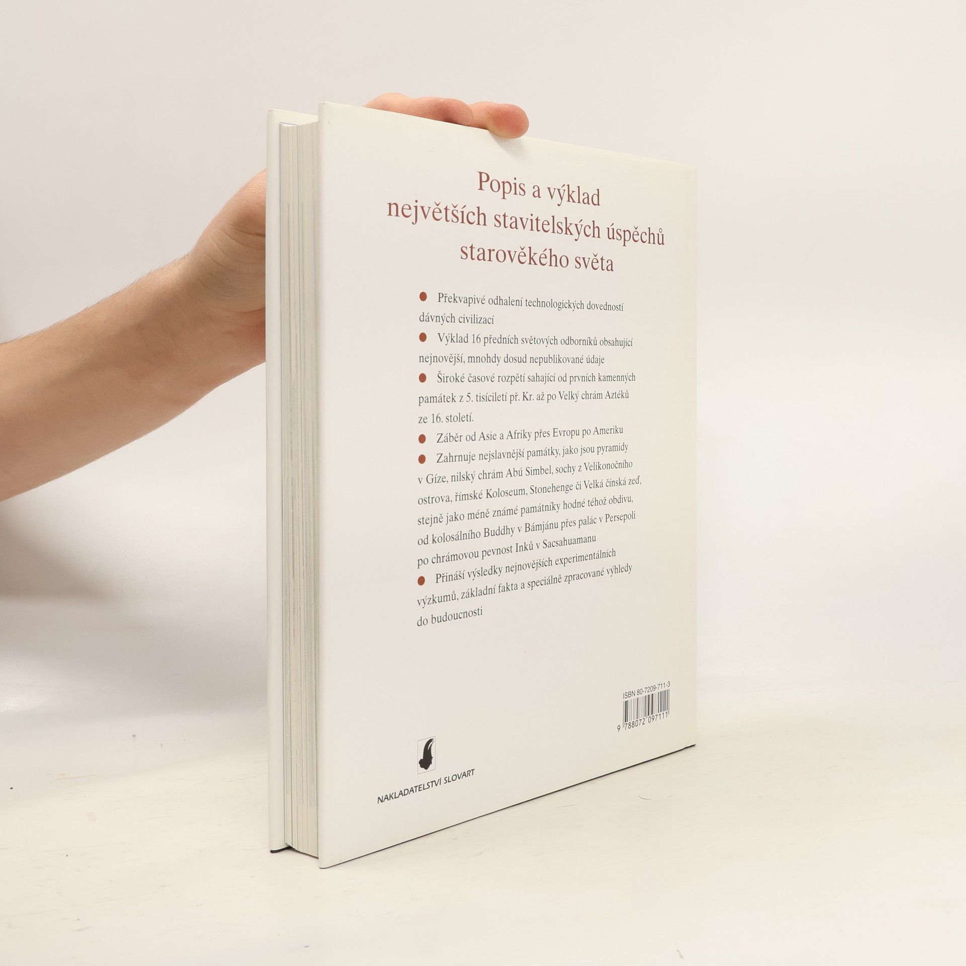 Kniha líčí osudy starověkých architektonických památek. Bohatě popisuje průběh jejich stavby, největší slávy a jejich postupného chátrání. Kniha je doplněna bohatými ilustracemi.
