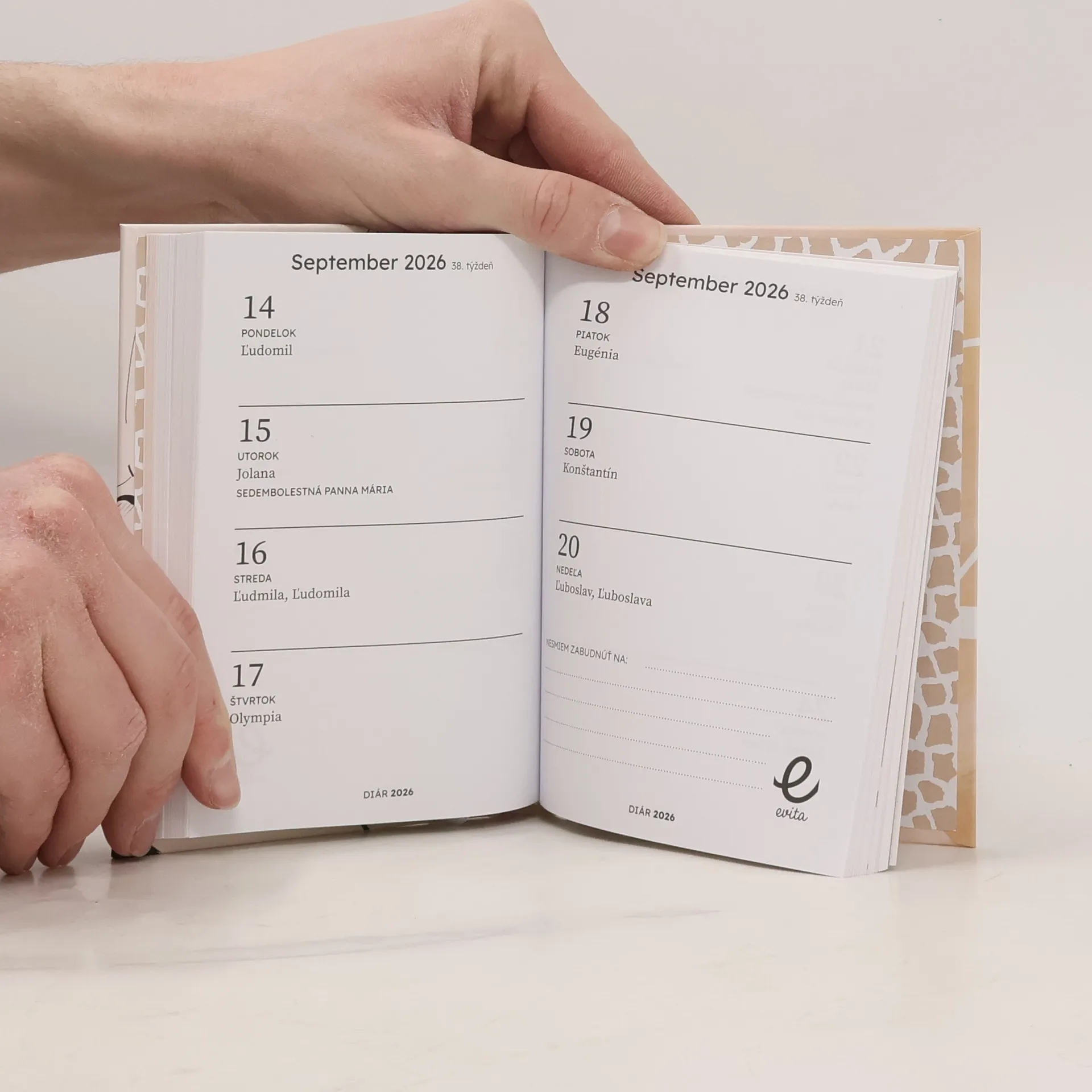 Praktický, kabelkový a inšpiratívny – nový Evita diár 2026 je ideálnym spoločníkom každej ženy, ktorá chce mať svoje sny, plány aj povinnosti pod kontrolou. Obsahuje prehľadný kalendár s menami, miesto na poznámky a ciele, horoskop, jemné ilustrácie a množstvo motivačných citátov, ktoré vás budú sprevádzať celým rokom.