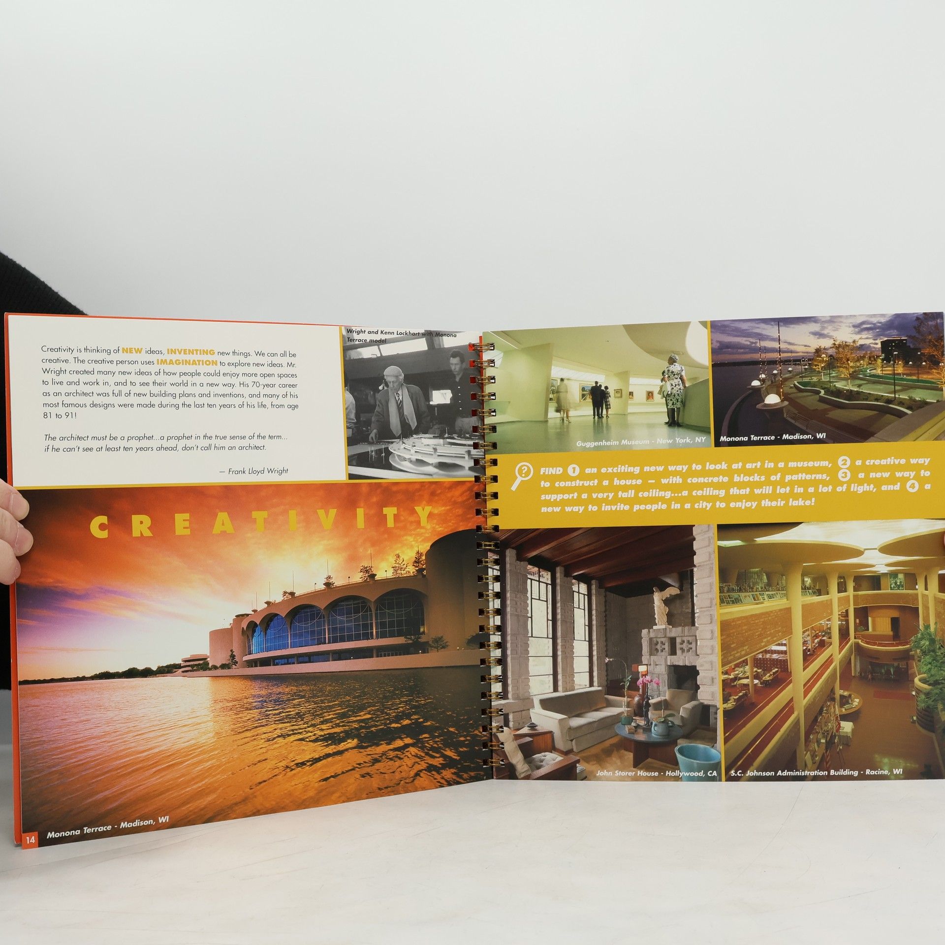 Photographs, drawings, and text introduce the architecture of Frank Lloyd Wright and examine the architectural principles evident in his work.