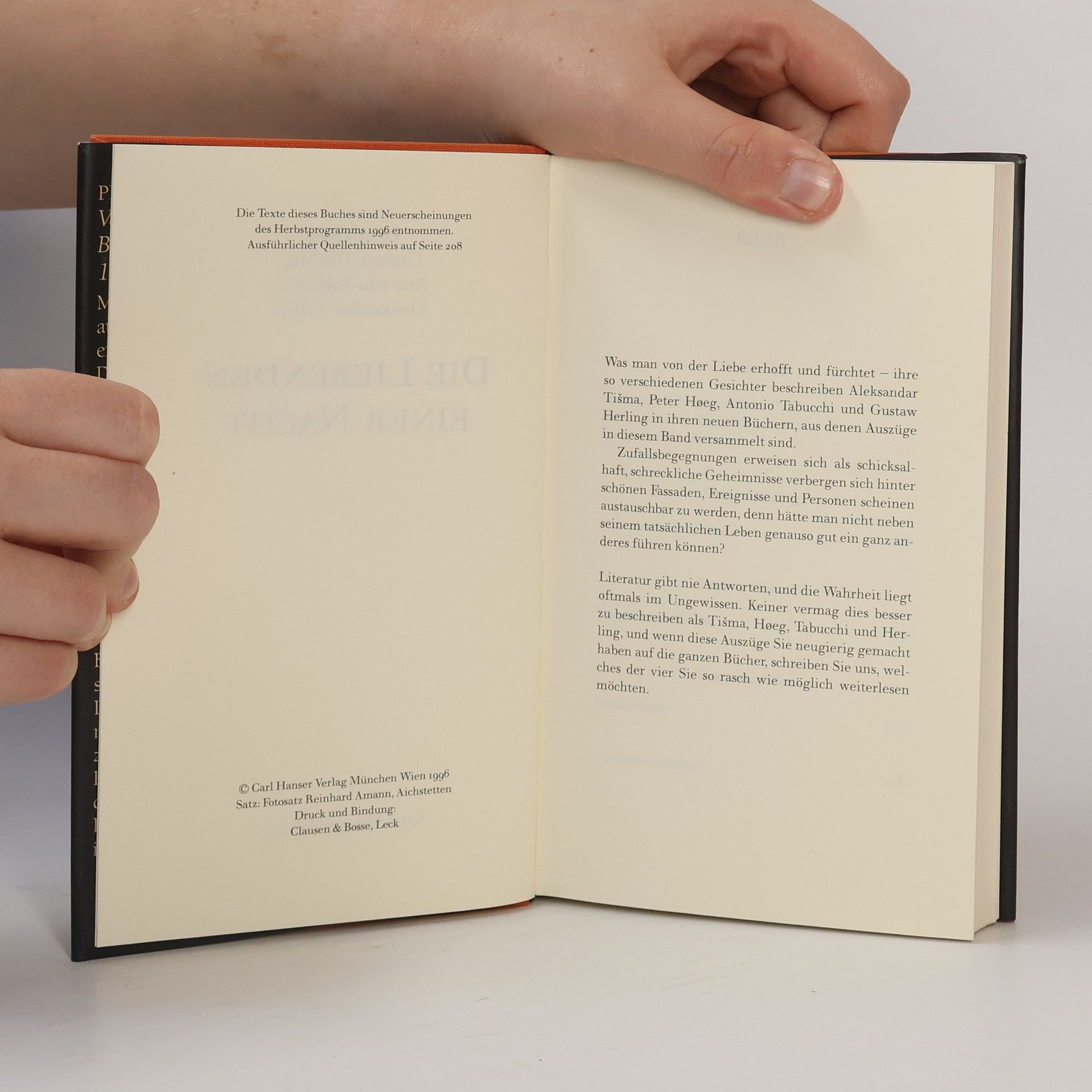 Die Liebenden einer Nacht, Aleksandar Tišma, Gustaw Herling-Grudziński, Antonio Tabucchi, Peter Høeg