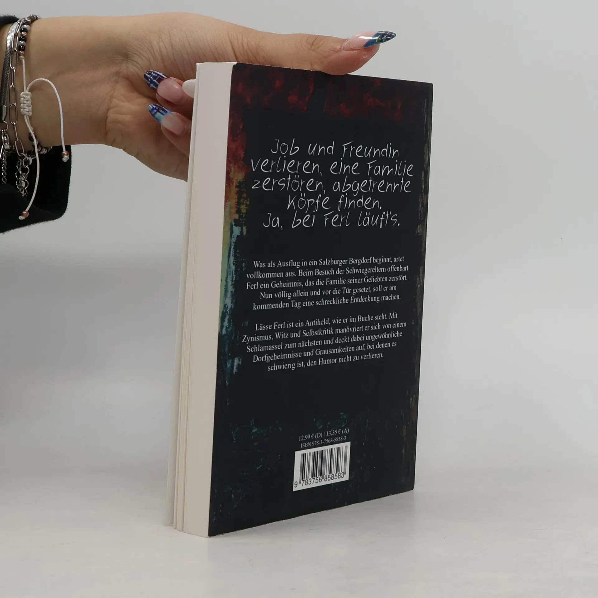 Job und Freundin verlieren, eine Familie zerstören, abgetrennte Köpfe finden. Ja, bei Ferl läuft's. Was als Ausflug in ein Salzburger Bergdorf beginnt, artet vollkommen aus. Beim Besuch der Schwiegereltern offenbart Ferl ein Geheimnis, das die Familie seiner Geliebten zerstört. Nun völlig allein und vor die Tür gesetzt, soll er am kommenden Tag eine schreckliche Entdeckung machen. Lässe Ferl ist ein Antiheld, wie er im Buche steht. Mit Zynismus, Witz und Selbstkritik manövriert er sich von einem Schlamassel zum nächsten und deckt dabei ungewöhnliche Dorfgeheimnisse und Grausamkeiten auf, bei denen es schwierig ist, den Humor nicht zu verlieren.