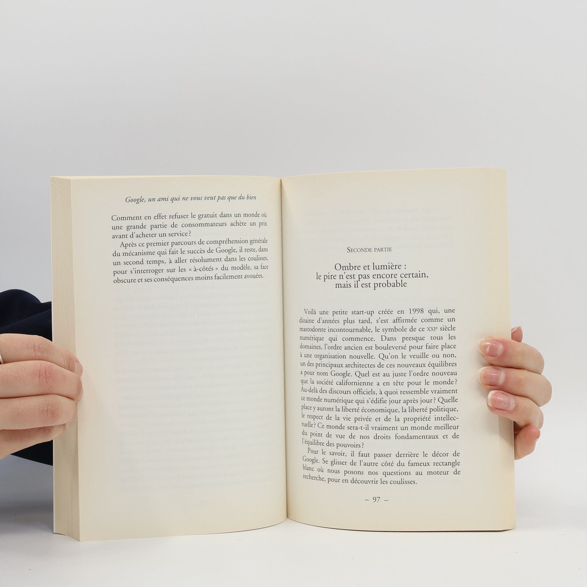 " J'ai toujours pris la défense des consommateurs et des "usagers". Mais, cette fois, les enjeux dépassent le pouvoir d'achat des Français. L'émergence de Google fait peser une menace sur la protection de nos vies personnelles. Nous sommes analysés, scrutés et revendus dans des fichiers ad hoc aux annonceurs qui font la fortune du moteur de recherche. Google apporte la connaissance et les savoirs, certes ! Mais l'entreprise multimilliardaire a décidé de s'approprier les contenus : livres, informations, programmes télévisés. Bientôt, elle aura le pouvoir de diffuser SA version de la culture et du commerce en ligne. Il sera alors trop tard. Enfin, au moment où la France est appelée à produire un gros effort de redressement, Google, 1,5 milliard de chiffre d'affaires dans notre pays, a localisé ses activités en Irlande. Google, notre ami de tous les jours, échappe en grande partie à ses responsabilités fiscales. "