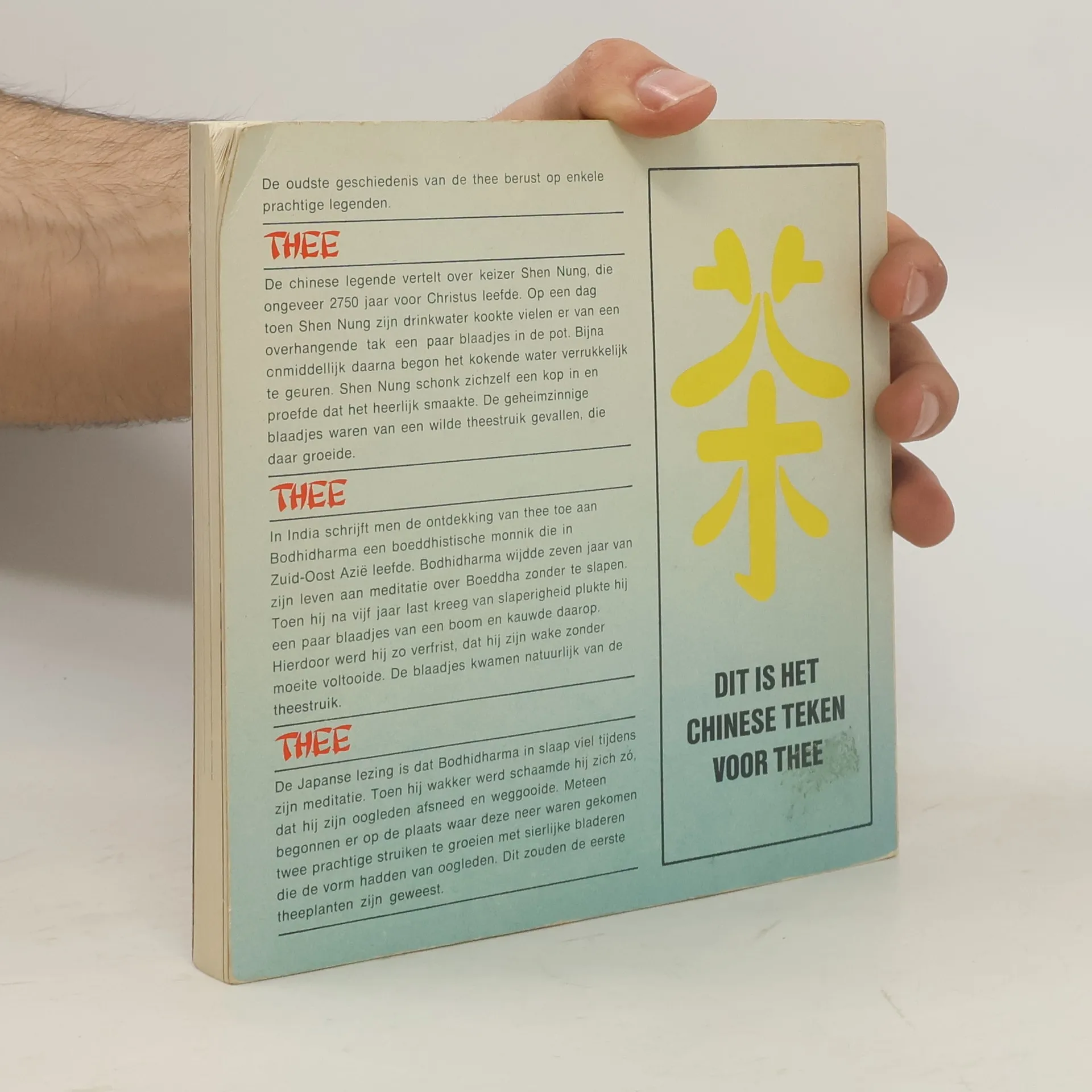 Populair-wetenschappelijke beschrijving van de thee en haar geschiedenis in China en Japan, Europa en de Nieuwe Wereld. Tevens informatie over verbouwing en bewerking, produktie en consumptie, farmocologische aspecten, theegerei, theezetten en theerecepten.