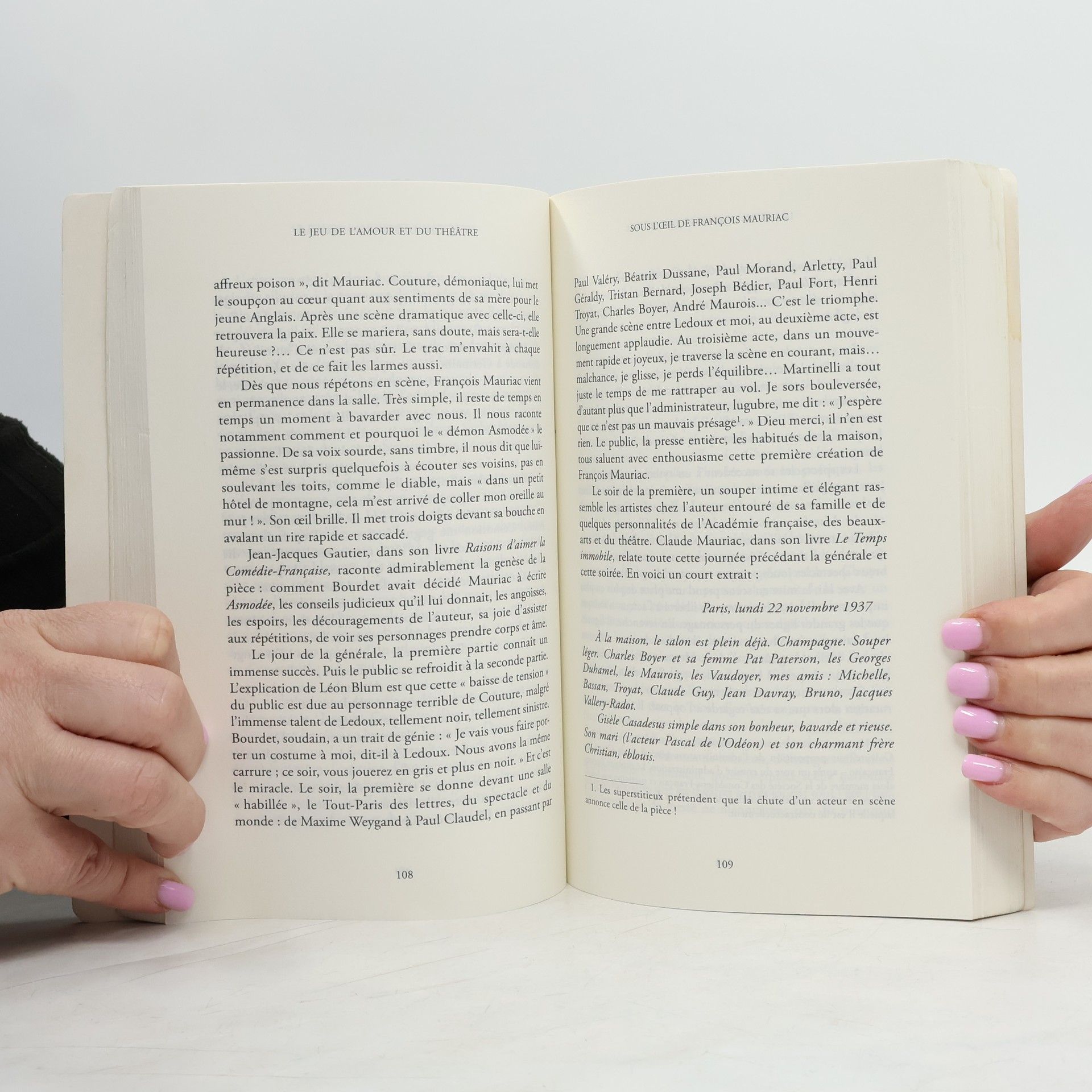 Lorsque le dernier "monstre sacré" du théâtre français nous raconte sa vie, c'est à une passionnante traversée d'un siècle que nous sommes invités. La jeune femme qui, le 5 juillet 1934, est reçue à la Comédie-Française à l'âge de vingt ans ne vient pas d'une famille ordinaire. Musiciens, comédiens, peintres: ne dit-on pas que les Casadesus ont le "gène de l'art " ? Gisèle Casadesus, en mêlant anecdotes savoureuses et description du travail de comédien, évoque ici son étincelant parcours au sein de la prestigieuse compagnie, qui la verra jouer sous la direction de metteurs en scène tels que Jacques Copeau ou Louis Jouvet, et en compagnie des meilleurs comédiens de son temps comme Pierre Fresnay, Madeleine Renaud, Jean-Louis Barrault... Elle retrace aussi sa carrière cinématographique aux côtés des plus grands: Raimu, Michel Simon, Jean Gabin, Michel Serrault, et plus récemment Gérard Depardieu dans La Tête en friche... Ce livre est le témoignage d'une femme exceptionnelle qui, malgré une carrière de premier plan, a réussi sa vie amoureuse et familiale. Gisèle Casadesus porte un regard d'une fine lucidité sur le "jeu de l'amour et du théâtre " qui a constitué toute sa vie, et qu'elle décrit avec beaucoup d'humour, de jeunesse et d'humanité.