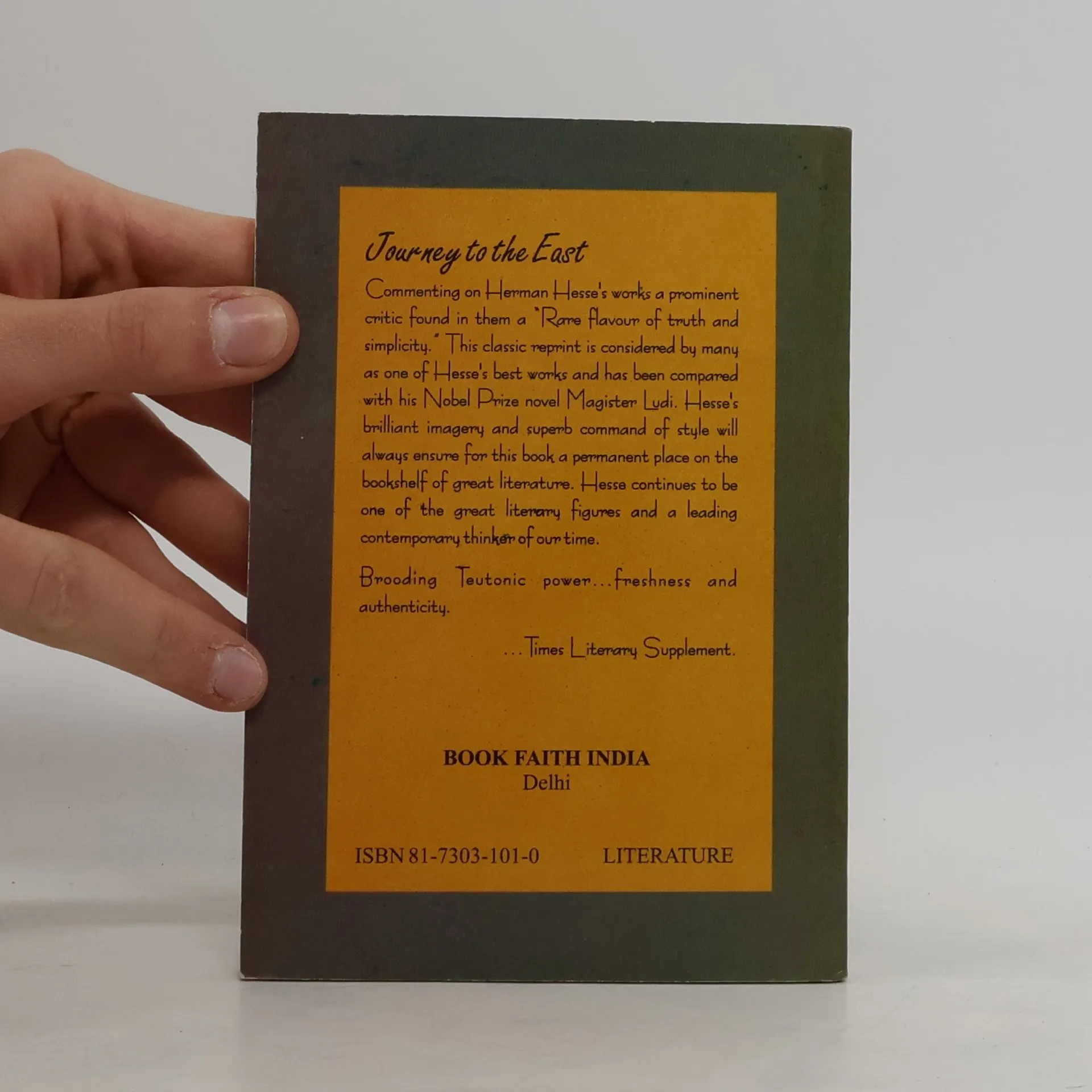 In simple, mesmerizing prose, Hermann Hesse tells of a journey both geographic and spiritual. H.H., a German choirmaster, is invited on an expedition with the League, a secret society whose members include Paul Klee, Mozart, and Albertus Magnus. The participants traverse both space and time, encountering Noah s Ark in Zurich and Don Quixote at Bremgarten. The pilgrims ultimate destination is the East, the Home of the Light, where they expect to find spiritual renewal. Yet the harmony that ruled at the outset of the trip soon degenerates into open conflict. Each traveler finds the rest of the group intolerable and heads off in his own direction, with H.H. bitterly blaming the others for the failure of the journey. It is only long after the trip, while poring over records in the League archives, that H.H. discovers his own role in the dissolution of the group, and the ominous significance of the journey itself.