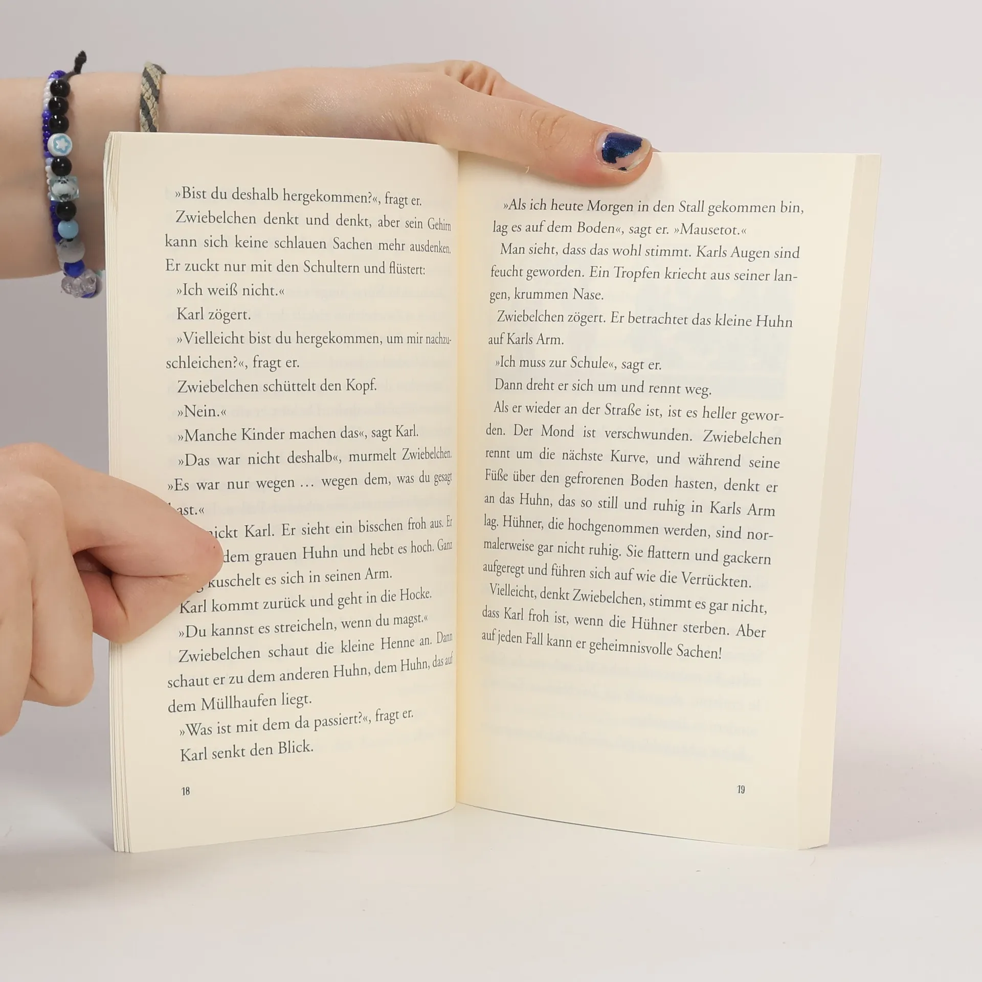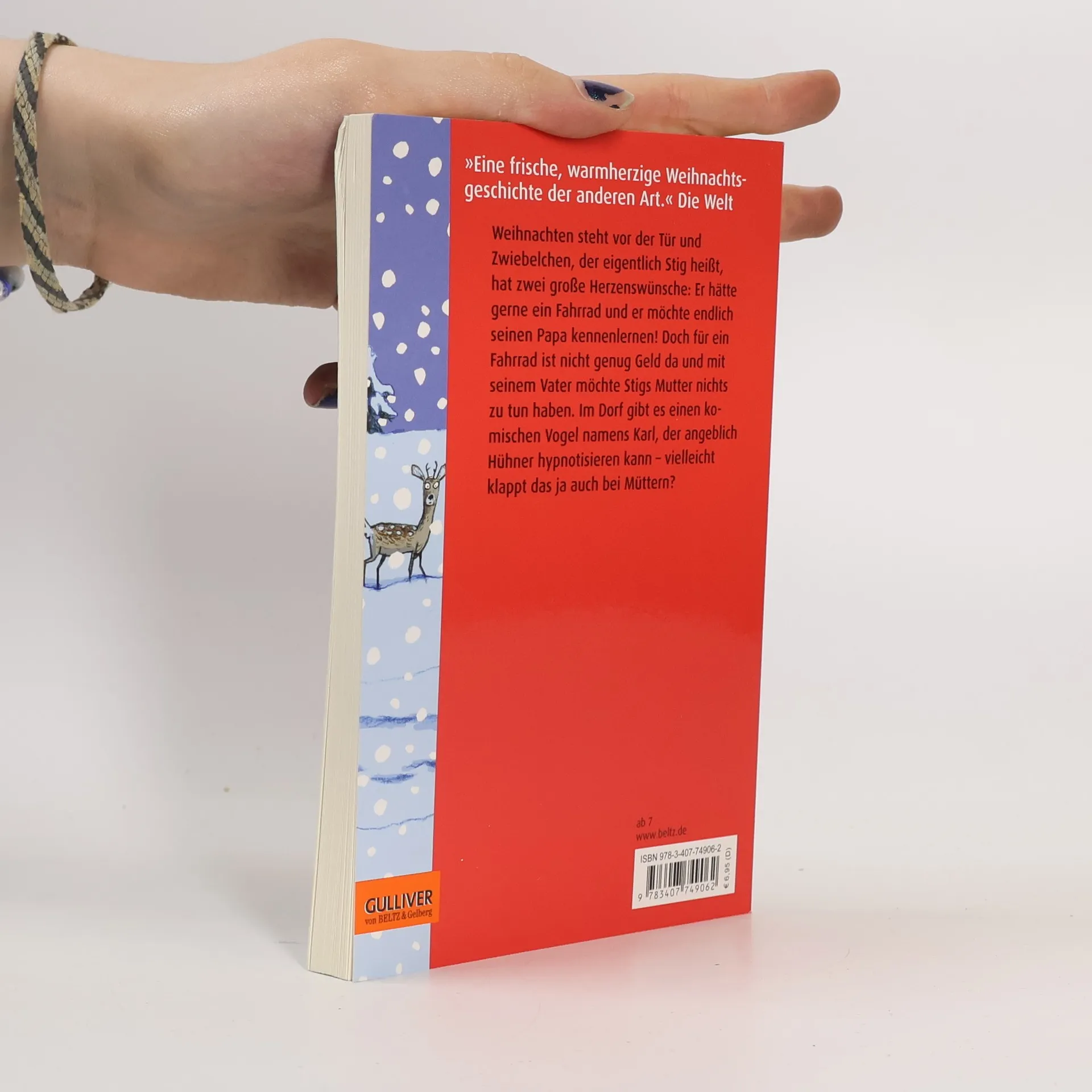 Weihnachten steht vor der Tür und Zwiebelchen, der eigentlich Stig heißt, hat zwei große Herzenswünsche: Er hätte gerne ein Fahrrad und er möchte endlich seinen Papa kennenlernen! Doch für ein Fahrrad ist nicht genug Geld da und mit seinem Vater möchte Stigs Mutter nichts zu tun haben. Im Dorf gibt es einen komischen Kauz namens Karl, der angeblich Hühner hypnotisieren kann – vielleicht klappt das ja auch bei Müttern? Am Ende gehen Zwiebelchens Wünsche in Erfüllung, wenn auch anders, als er sich das vorgestellt hatte.