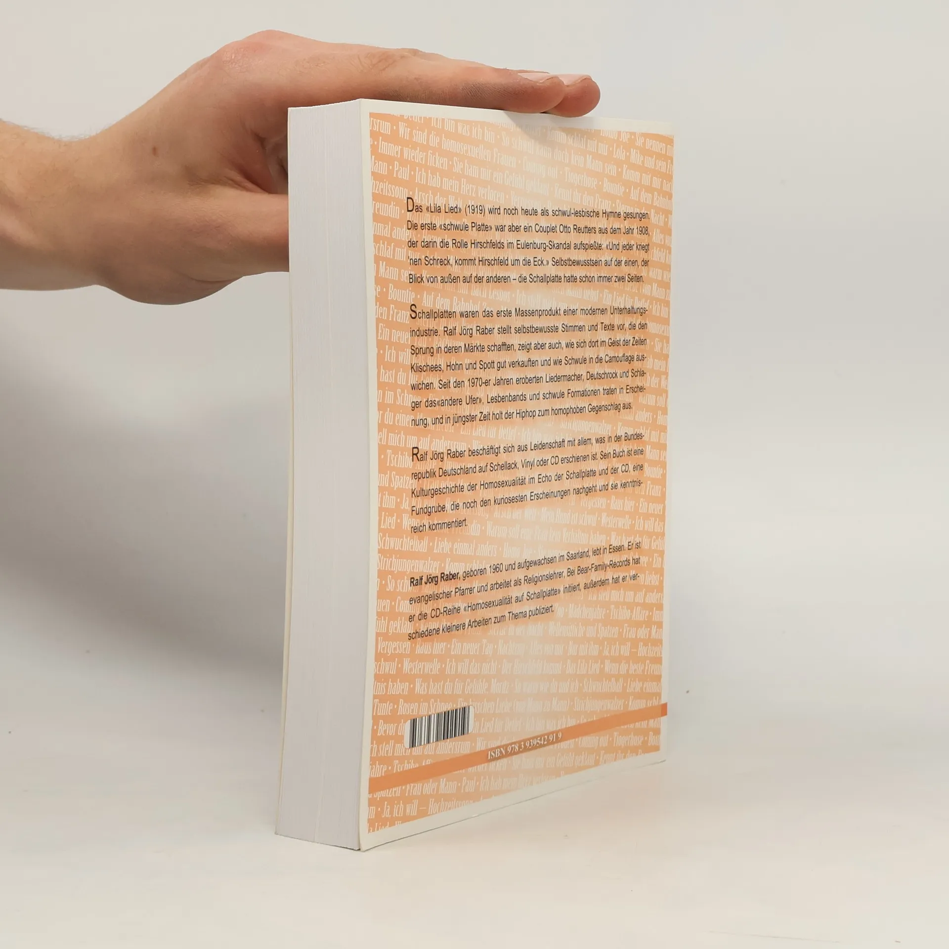 Das "Lila Lied" (1920) wird noch heute als schwul-lesbische Hymne gesungen. Die erste "schwule Platte" aber war ein Couplet Otto "Und jeder kriegt 'nen Schreck, kommt Hirschfeld um die Eck."Schallplatten waren das erste Massenprodukt der modernen Unterhaltungsindustrie. Ralf Jörg Raber stellt selbstbewusste Stimmen und Texte vor, die den Sprung in dieses Medium schafften. Er zeigt, wie sich dort auch Klischees, Hohn und Spott breit machten, wie Schwule in die Camouflage auswichen. Später eroberten Liedermacher und Schlager, Lesbenbands und schwule Formationen das Terrain, und gerade in jüngster Zeit holt der Hiphop zum homophoben Gegenschlag aus. Mit viel Herzblut erzählt Raber die Kulturgeschichte der Homosexualität im Echo der Schallplatte, liefert eine Fundgrube, die noch den kuriosesten Erscheinungen nachgeht und sie kenntnisreich einordnet.