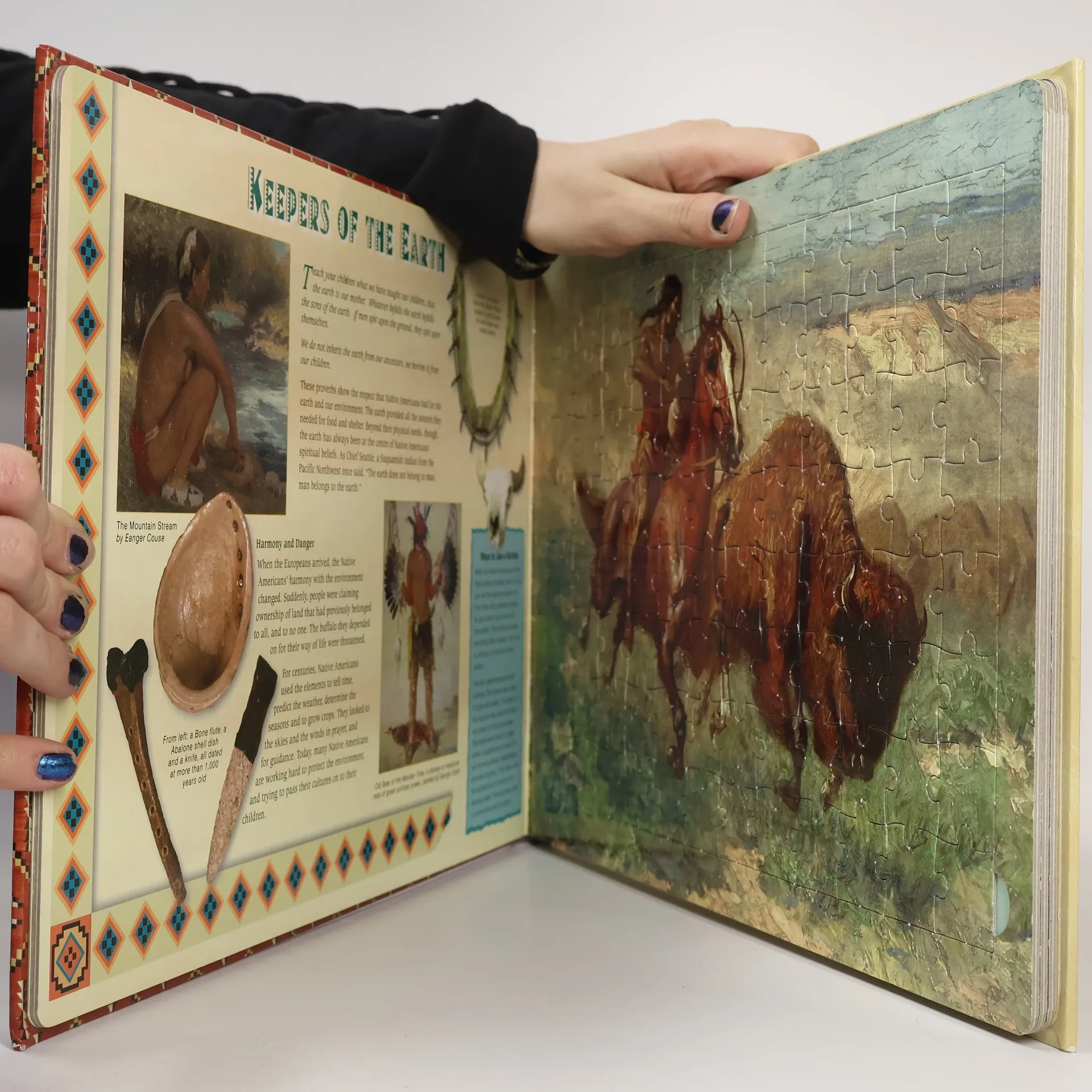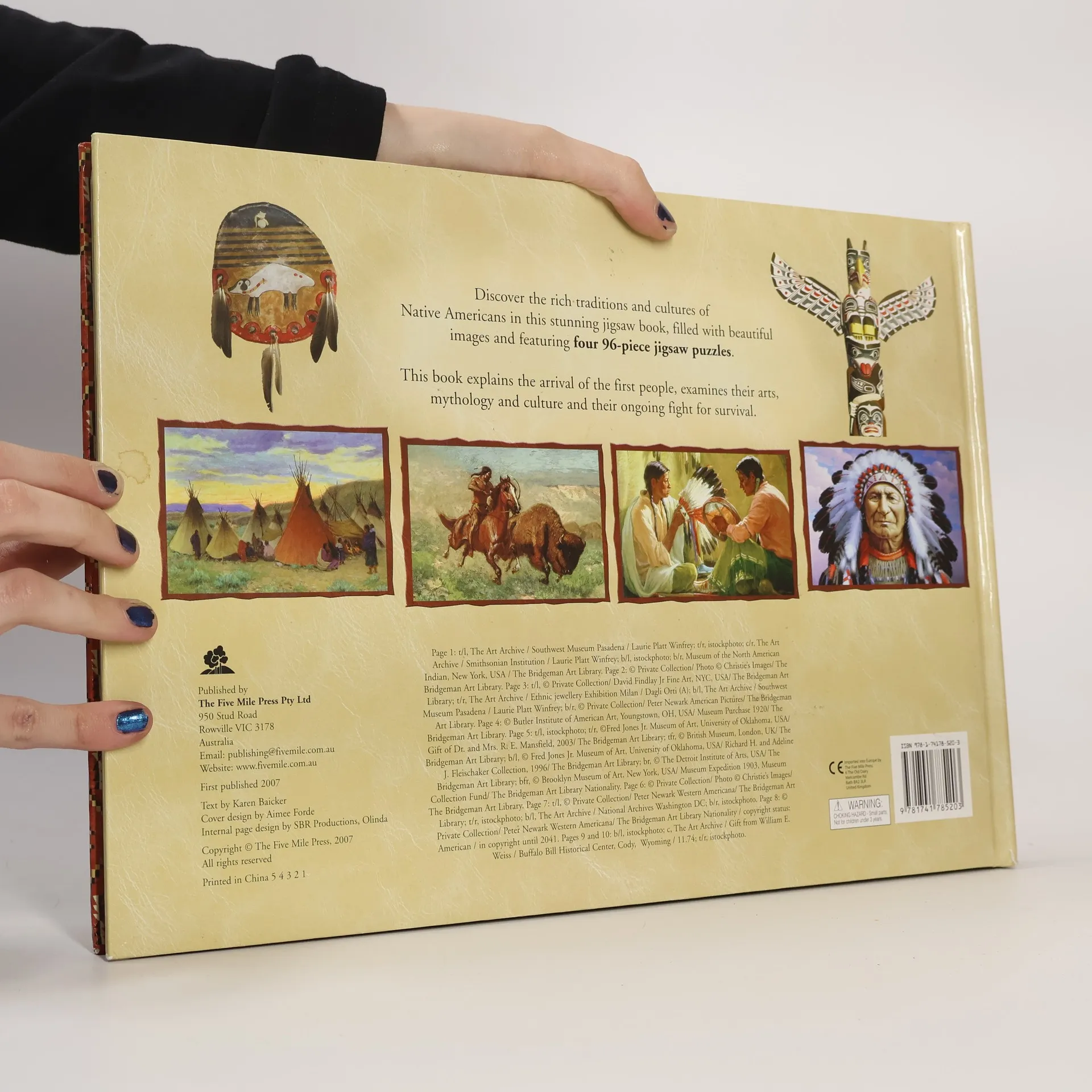 Discover the rich tradition and culture of the Native Americans in this stunning jigsaw book, filled with beautiful images and featuring four 96-piece jigsaw puzzles. This book explains the arrival of the first people, examines their arts, mythology and culture, and documents their long-running war for rights in the USA. Extent: 8 spacer + 1 book (5 spreads text + case)Print/stock: 4 spacer - 4c + aqueous varnish x 0c on 500gsm greyboard, 4 spacer - 1c (process colour)+ aqueous varnish x 0c on 500gsm greyboard, cover - 4c + pp lamination x 0c on 500gsm artpaper + 3mm chip board, text - 4c + UV varnish x 0c on 500gsm greyboard.