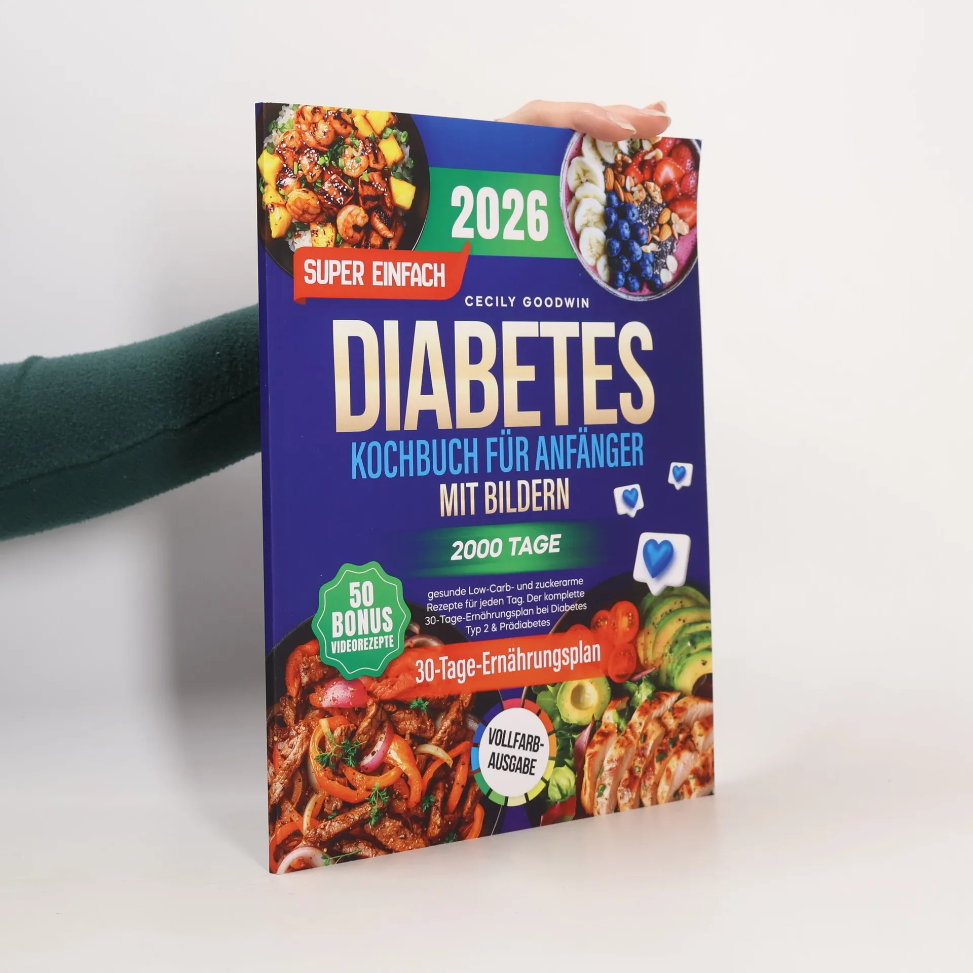 Super einfaches Diabetes-Kochbuch für Anfänger mit Bildern: 2000 Tage gesunde Low-Carb- und zuckerarme Rezepte für jeden Tag. Der komplette 30-Tage-Ernährungsplan bei Diabetes Typ 2 & Prädiabetes. 50 Bonus Videorezepte. Vollfarb-Ausgabe, Cecily Goodwin