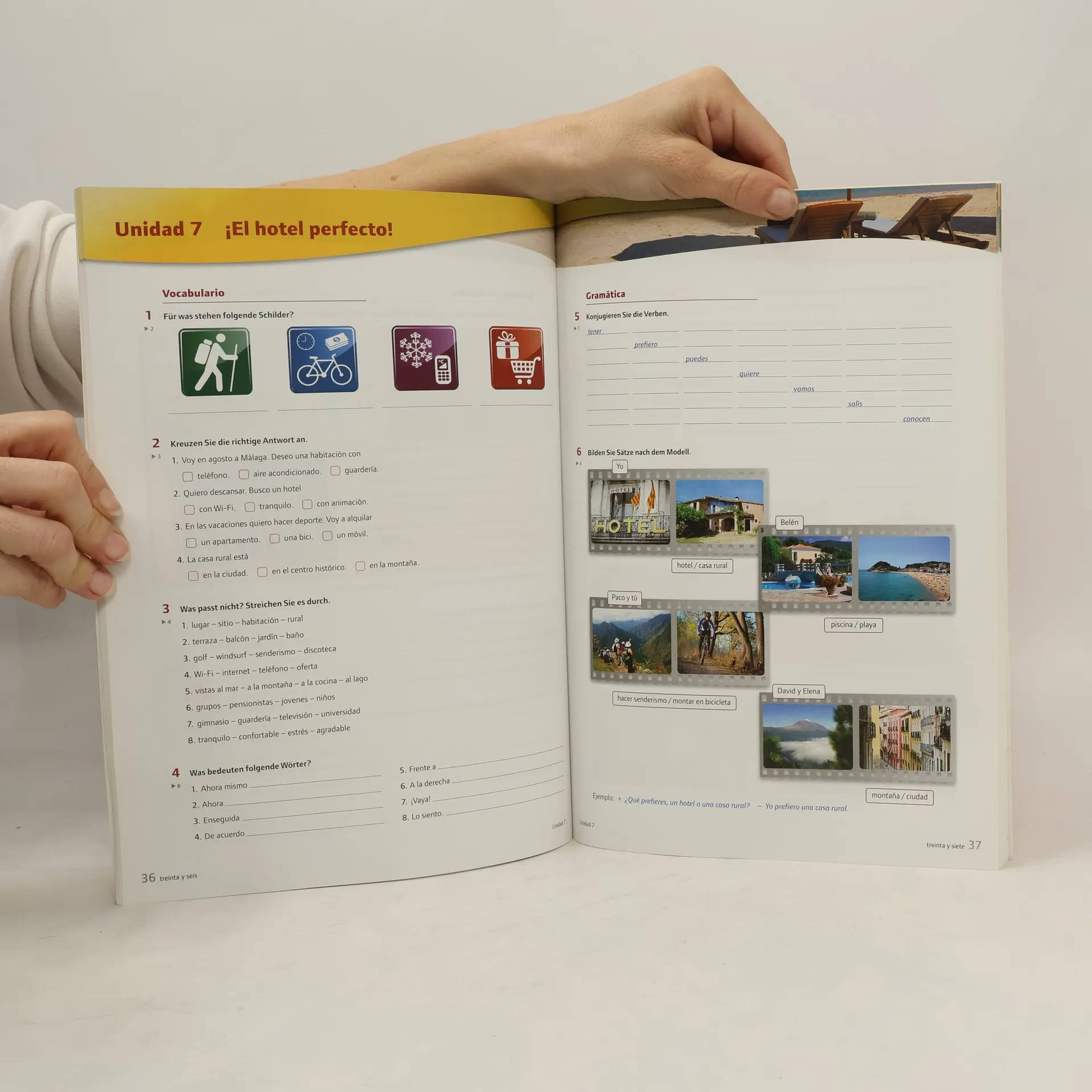 Das Sprachtraining bietet zusätzliche Übungen, die selbstständig zu Hause oder im Kurs bearbeitet werden können. Jede Unidad ist gegliedert nach den Bereichen Vocabulario, Gramática, Comunicación y mediación, Lectura y redacción.