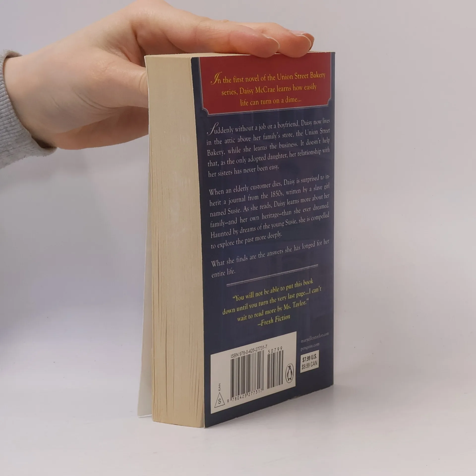 <b>In the first novel of the Union Street Bakery series, Daisy McCrae learns how easily life can turn on a dime…</b> Suddenly without a job or a boyfriend, Daisy now lives in the attic above her family’s store, the Union Street Bakery, while she learns the business. It doesn’t help that, as the only adopted daughter, her relationship with her sisters has never been easy. When an elderly customer dies, Daisy is surprised to inherit a journal from the 1850s, written by a slave girl named Susie. As she reads, Daisy learns more about her family—and her own heritage—than she ever dreamed. Haunted by dreams of the young Susie, who beckons Daisy to “find her,” she is compelled to explore the past more deeply. What she finds are the answers she has longed for her entire life.