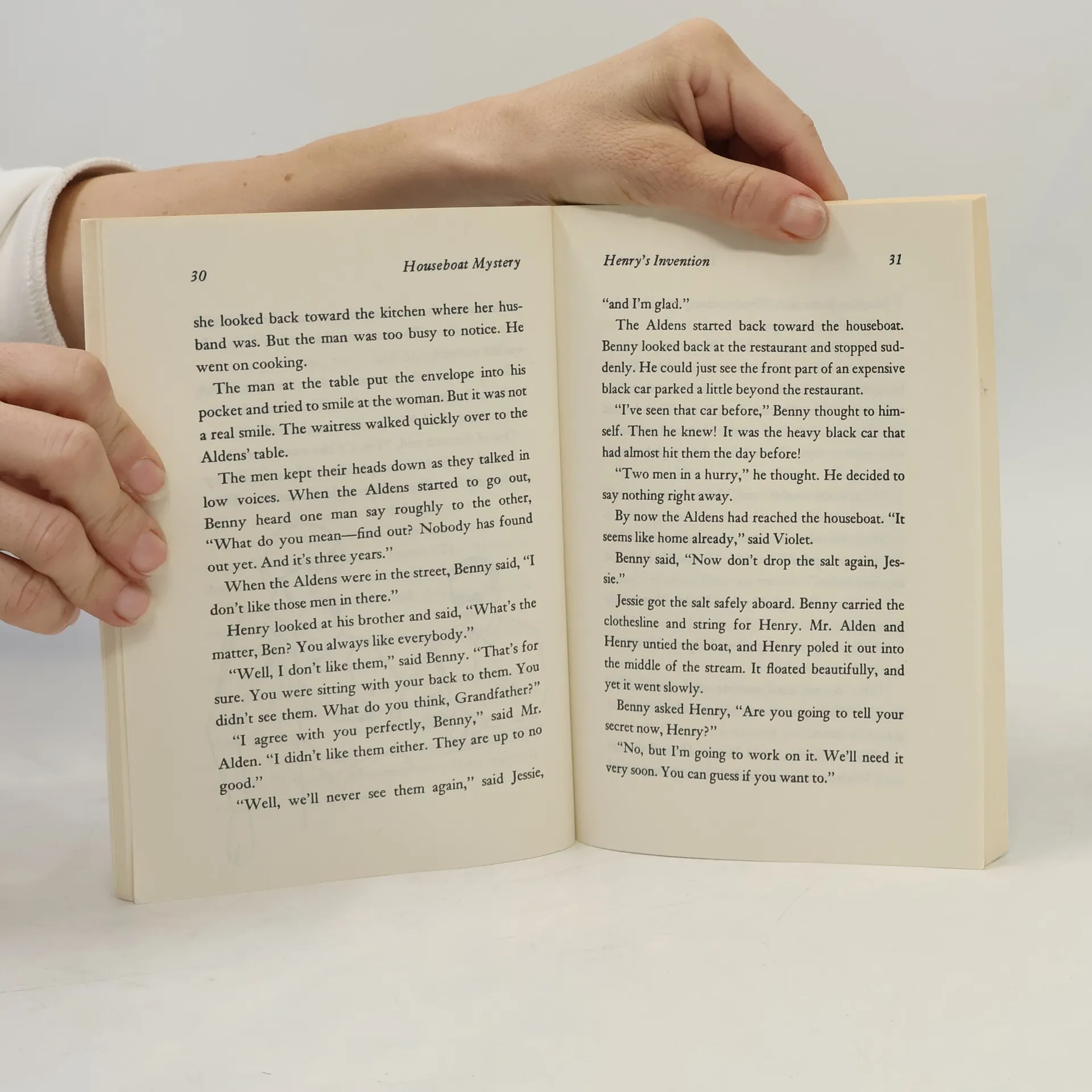 Henry, Jessie, Violet, and Benny used to live alone in a boxcar. Now they have a home with their grandfather and are spending a vacation traveling down the river on a houseboat.Throughout their journey, the Boxcar Children have the feeling they're being watched. Little do they know, someone is looking for something on their houseboat - and he'll stop at nothing until he gets it.