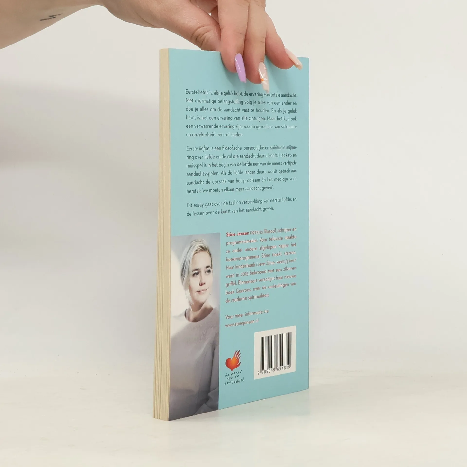 Het essay voor de Maand van de Spiritualiteit 2019 is geschreven door Stine Jensen (Hollands Diep). De maand heeft als thema Met Aandacht en het essay, met de titel Eerste liefde, zal daarop aansluiten. Stine Jensen was enthousiast aan het schrijven geslagen: ‘Ik vind het heel bijzonder dat ik dit mag doen. Het thema raakt hart, hoofd en ziel, want alles begint, staat of valt met aandacht.’ Jan Mulder, Arie Boomsma, Isa Hoes, Ben Tiggelaar, Rosita Steenbeek en Daphne Deckers gingen Jensen voor. Eerste liefde is een filosofische, persoonlijke en spirituele mijmering over liefde en de rol die aandacht daarin heeft. Het kat- en muisspel is in het begin van de liefde een van de meest verfijnde aandachtsspelen. Als de liefde langer duurt, wordt gebrek aan aandacht de oorzaak van het probleem én het medicijn voor herstel: ‘we moeten elkaar meer aandacht geven’. Dit essay gaat over de taal en verbeelding van eerste liefde, en de lessen over de kunst van het aandacht geven.