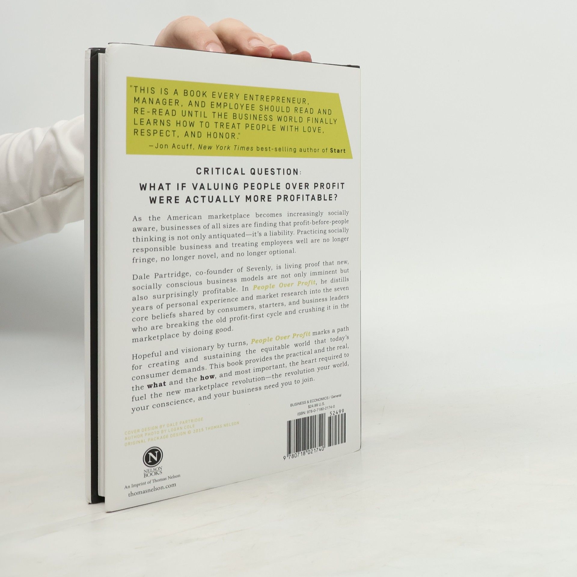 Serial entrepreneur and business visionary Dale Partridge built a multimillion-dollar company differently than how the typical enterprise is built. He did so using seven core beliefs that he believes are the secret to creating a sustaining world:• People matter• Truth wins• Transparency frees• Authenticity attracts• Quality speaks• Generosity returns• Courage sustainsAnd now he is not alone. Every day major headlines tell the story of a new and better American marketplace. Established corporations have begun reevaluating the quality of their products, the ethics of their supply chain, and how they can give back. Meanwhile, millions of entrepreneurs who want a more responsible and compassionate marketplace have launched a new breed of socially focused business models. And you can too! In People Over Profit, find the courage to value honesty over deception, transparency over secrecy, authenticity over hype, and ultimately, people over profit.