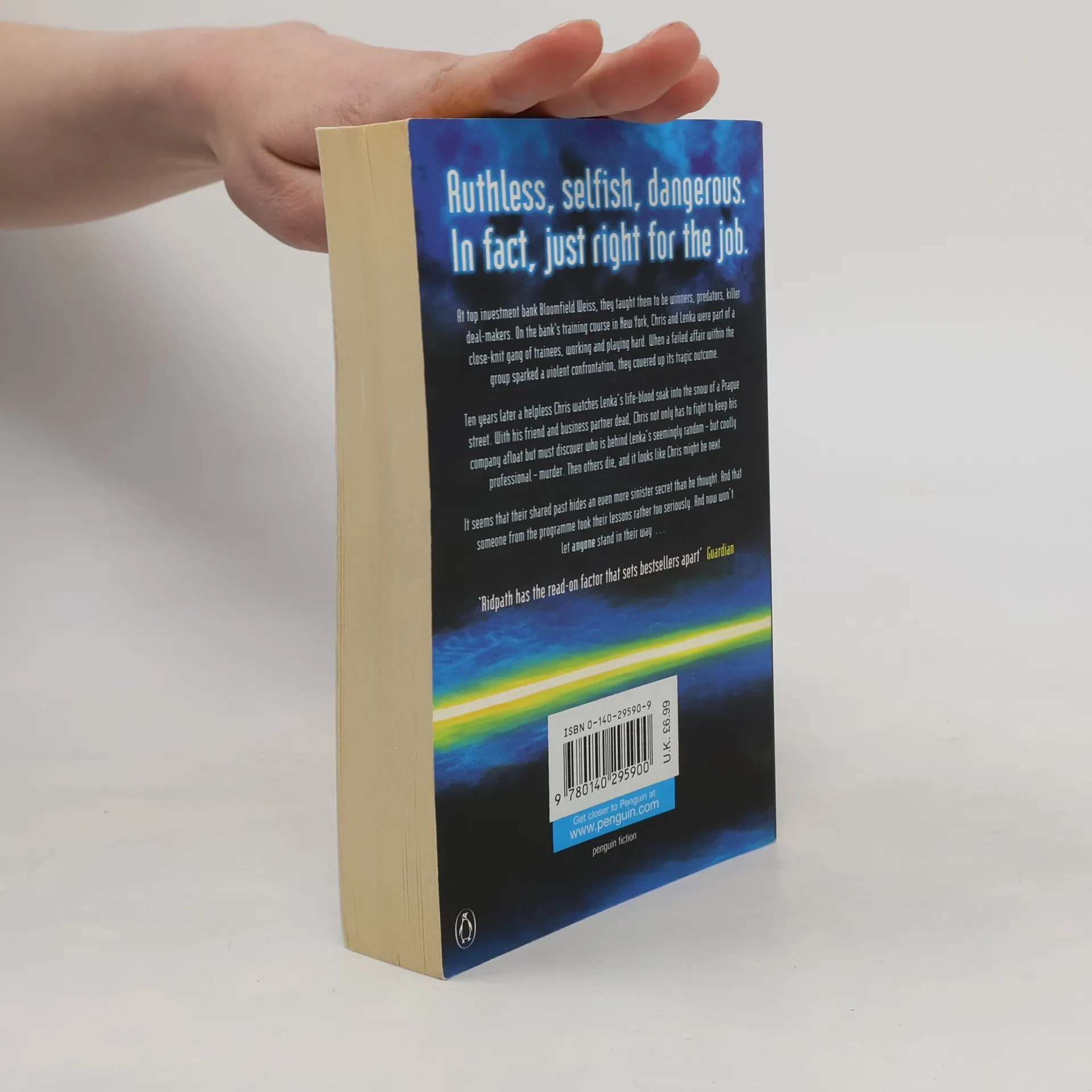 Ruthless, selfish, dangerous. In fact, just right for the job. At top investment bank Bloomfield Weiss, they taught them to be predators, killer deal-makers. While on the bank's training programme in New York, Chris and Lenka had become part of a close-knit gang of trainees. But when a drunken boat trip ends in tragedy, the gang decide to cover up the truth. Ten years later Lenka is murdered in Prague. Chris, now her business partner, must fight to keep their company afloat - and discover who was behind Lenka's death. For it seems the clues to the murder are rooted in that fatal boat-trip so many years ago.