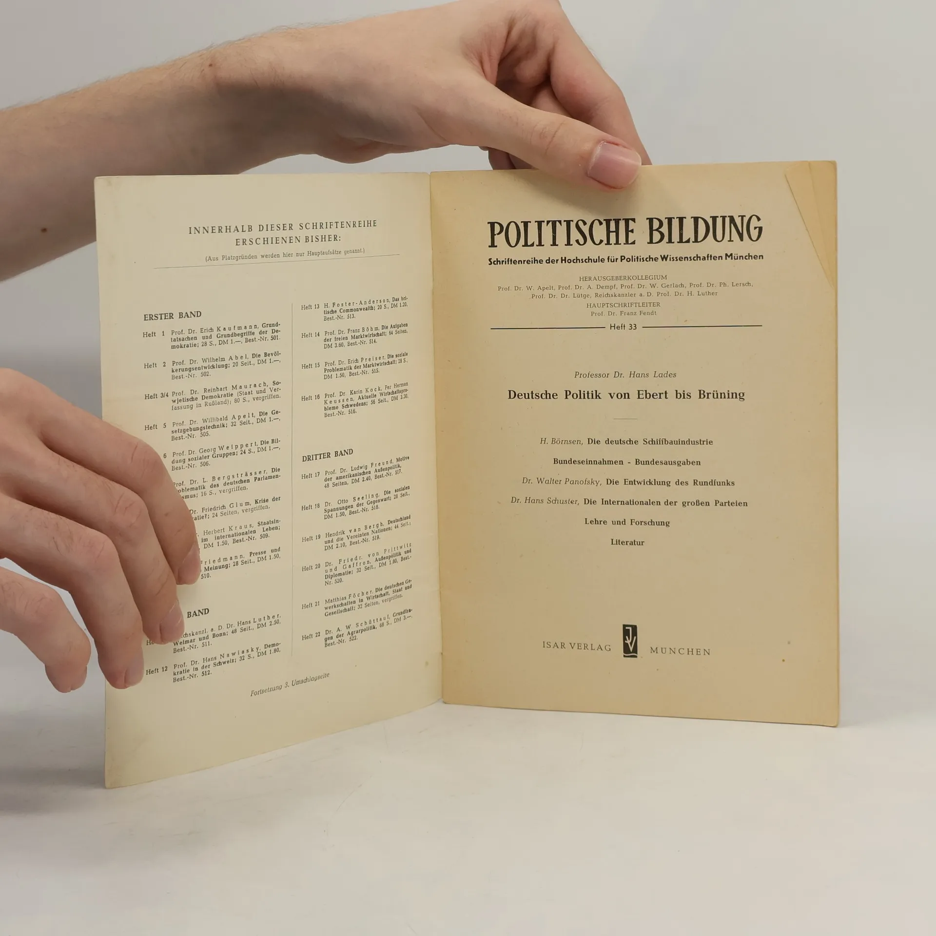 Deutsche Politik von Ebert bis Brüning, Hans Lades