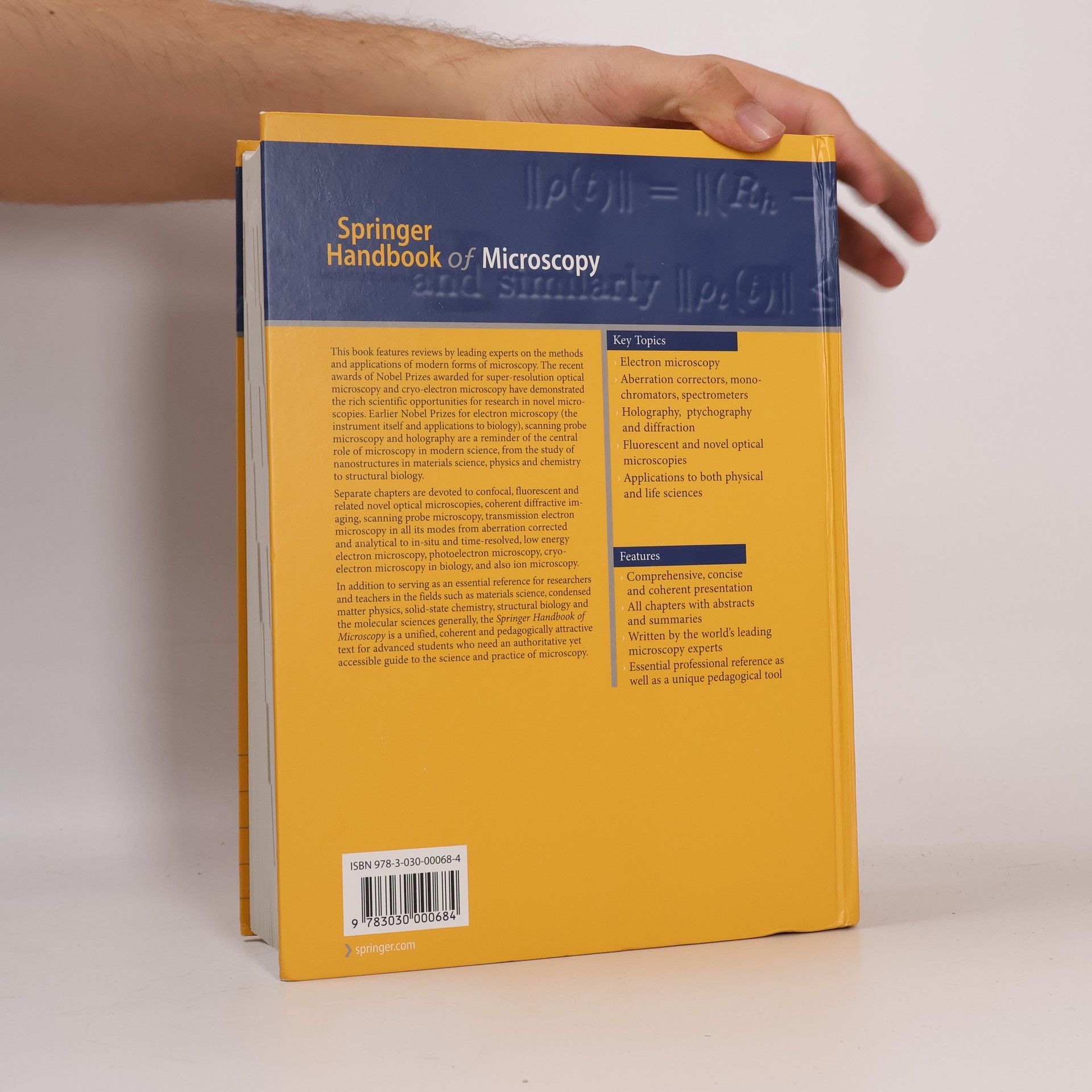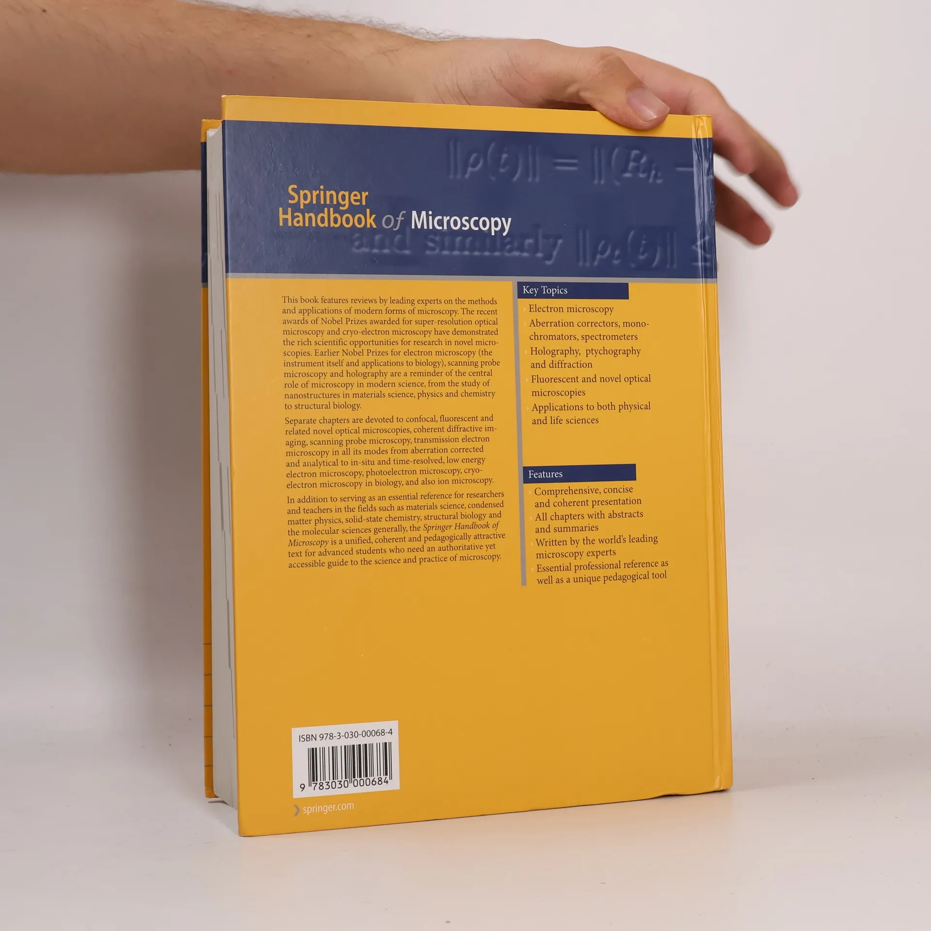 This book features reviews by leading experts on the methods and applications of modern forms of microscopy. The recent awards of Nobel Prizes awarded for super-resolution optical microscopy and cryo-electron microscopy have demonstrated the rich scientific opportunities for research in novel microscopies. Earlier Nobel Prizes for electron microscopy (the instrument itself and applications to biology), scanning probe microscopy and holography are a reminder of the central role of microscopy in modern science, from the study of nanostructures in materials science, physics and chemistry to structural biology. Separate chapters are devoted to confocal, fluorescent and related novel optical microscopies, coherent diffractive imaging, scanning probe microscopy, transmission electron microscopy in all its modes from aberration corrected and analytical to in-situ and time-resolved, low energy electron microscopy, photoelectron microscopy, cryo-electron microscopy in biology, and also ion microscopy. In addition to serving as an essential reference for researchers and teachers in the fields such as materials science, condensed matter physics, solid-state chemistry, structural biology and the molecular sciences generally, the Springer Handbook of Microscopy is a unified, coherent and pedagogically attractive text for advanced students who need an authoritative yet accessible guide to the science and practice of microscopy.