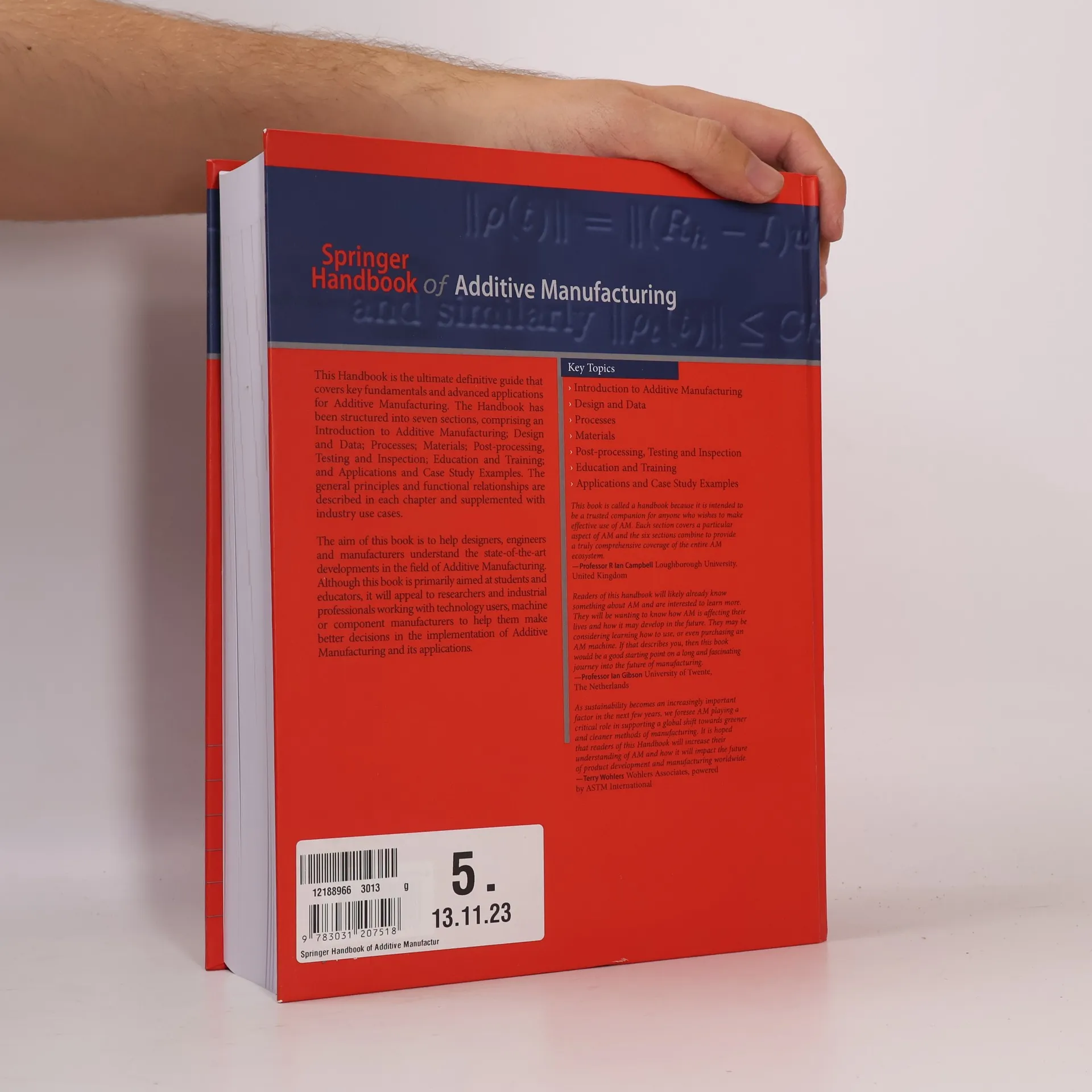 This Handbook is the ultimate definitive guide that covers key fundamentals and advanced applications for Additive Manufacturing. The Handbook has been structured into seven sections, comprising of a thorough Introduction to Additive Manufacturing; Design and Data; Processes; Materials; Post-processing, Testing and Inspection; Education and Training; and Applications and Case Study Examples. The general principles and functional relationships are described in each chapter and supplemented with industry use cases. The aim of this book is to help designers, engineers and manufacturers understand the state-of-the-art developments in the field of Additive Manufacturing. Although this book is primarily aimed at students and educators, it will appeal to researchers and industrial professionals working with technology users, machine or component manufacturers to help them make better decisions in the implementation of Additive Manufacturing and its applications.