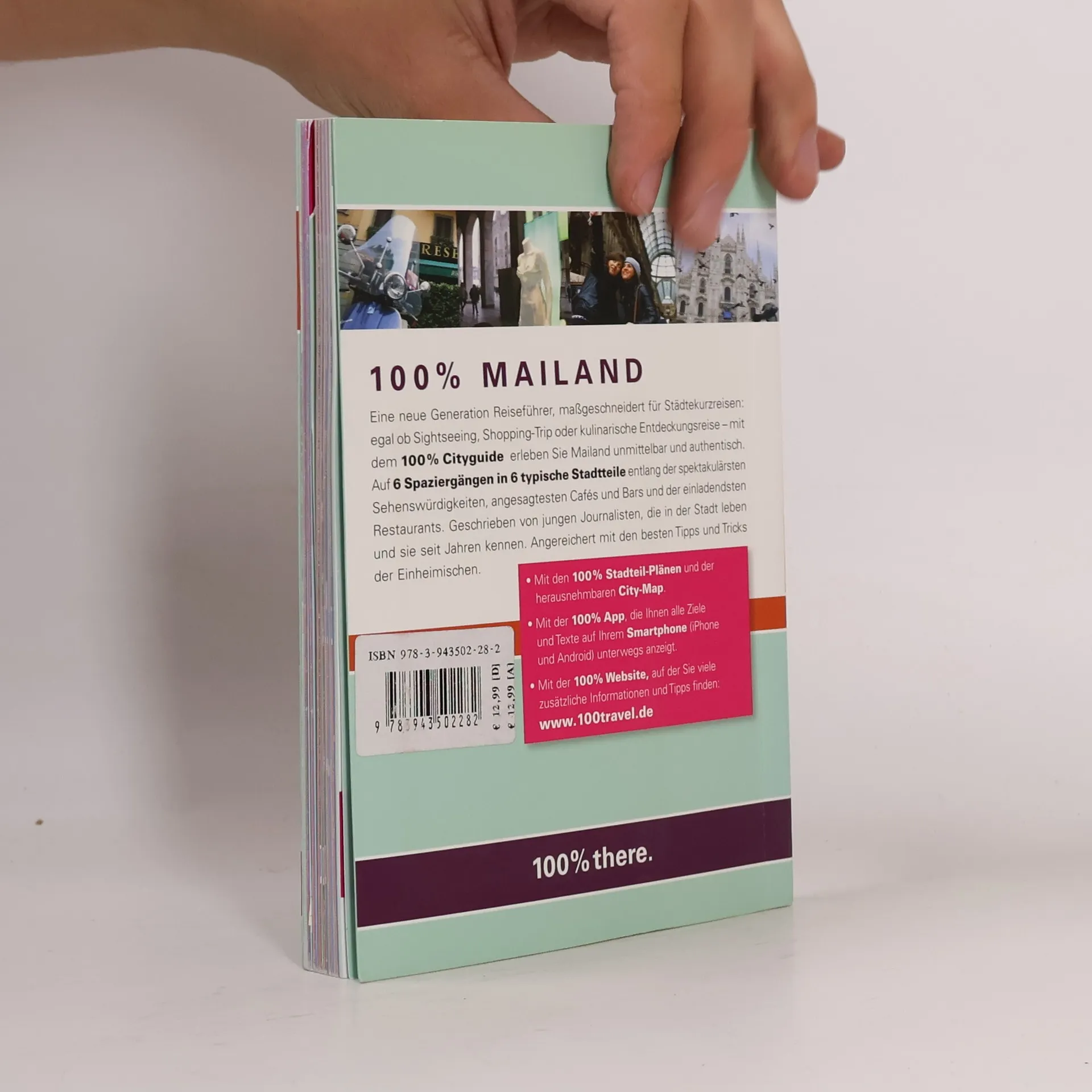 Eine neue Generation Reiseführer, maßgeschneidert für Städtekurzreisen und voller Insider-Tipps: egal ob Sightseeing, Shopping-Trip oder kulinarische Entdeckungsreise mit dem 100% Cityguide erleben Sie Mailand unmittelbar und authentisch. Auf 6 Spaziergängen in 6 typischen Stadtteilen entlang der schönsten Sehenswürdigkeiten, angesagtesten Cafés und Bars und der einladendsten Restaurants. Geschrieben von jungen Journalisten, die in der Stadt leben und sie seit Jahren kennen. Angereichert mit den besten Tipps und Tricks der Einheimischen. Orientierung bieten Ihnen die beigefügten 100% Stadtteil-Pläne und die herausnehmbare 100% City-Map. Mit der kostenlosen 100% App können Sie sich die Tipps, Texte, Pläne und Adressen des 100% Cityguides Mailand einfach auf Ihr Smartphone herunterladen. Die App bietet Ihnen weitere praktische Funktionen für die Reise (Audio-Sprachführer, U- und S-Bahn-Pläne etc.). Alle Bilder, Texte und Karten sind komplett offline, es entstehen keine Roaming-Gebühren. Die App funktioniert auf dem iphone oder Androidphone. Der 100% Cityguide Mailand inkl. App bietet Ihnen ein attraktives und preiswertes Komplettpaket für Ihren Mailand-Trip.