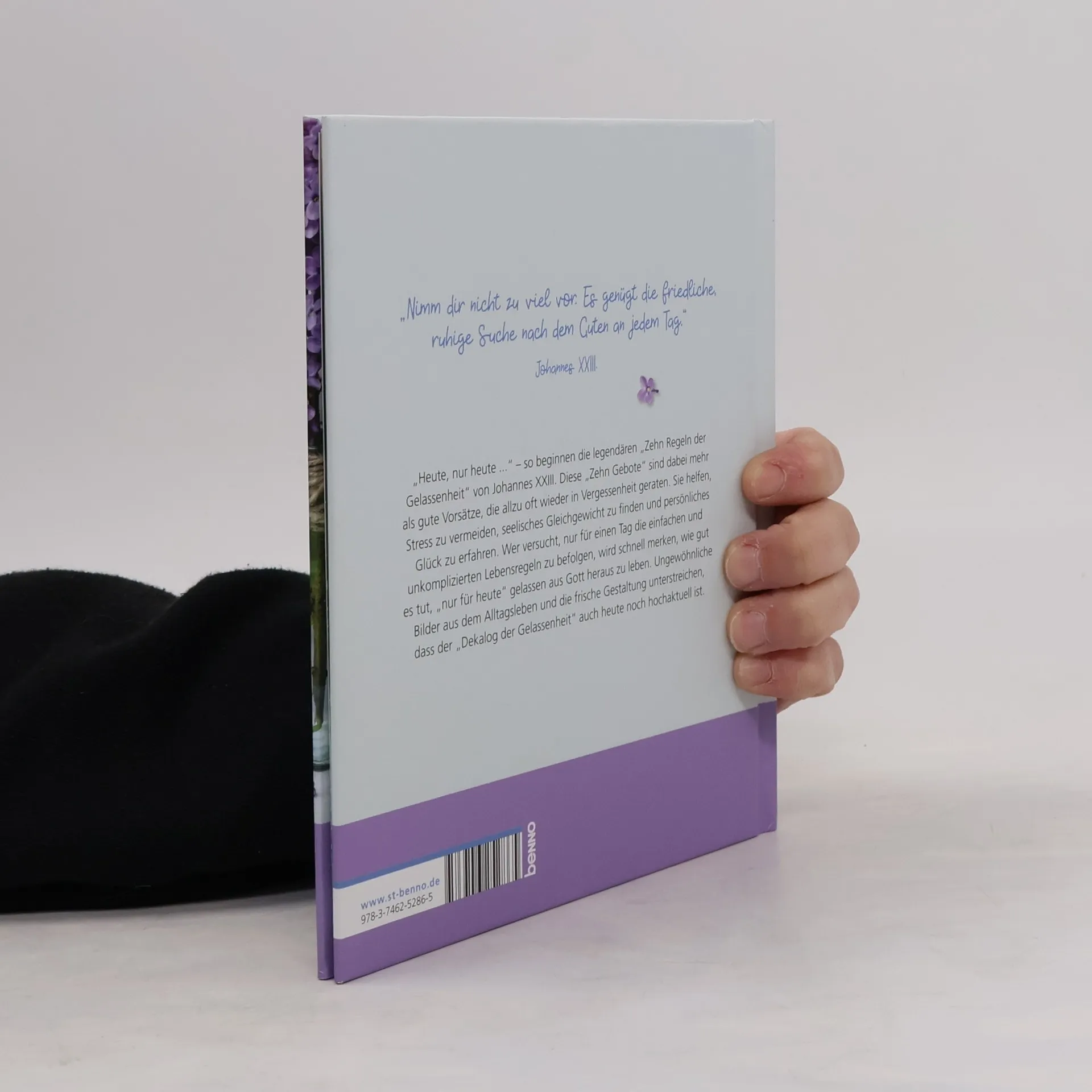 Ob den frischgebackenen Eltern, der gestressten Kollegin, dem Freund in einer neuen Lebenssituation - es gibt viele Menschen, denen man ein beruhigendes Wort sagen möchte: Lass dir Zeit, es wird schon werden. Du musst nicht immer 110 Prozent geben. Die zehn Gebote der Gelassenheit von Johannes XXIII. scheinen wie für unsere Zeit gemacht. Sie senden die wohltuende Botschaft, dass man mit Gelassenheit und einer Portion Gottvertrauen oft besser ans Ziel kommt. Farbenfrohe Fotos zeigen: Gerade die schönsten Dinge entstehen ohne unser Zutun. Genießen wir sie! das ideale Geschenk für Eilige und gegen ein notorisch schlechtes Gewissen wunderbare Naturfotografien mit dem Blick für kleine Details die 10 Gebote der Gelassenheit und weitere sympathische Weisheiten von Johannes XXIII.