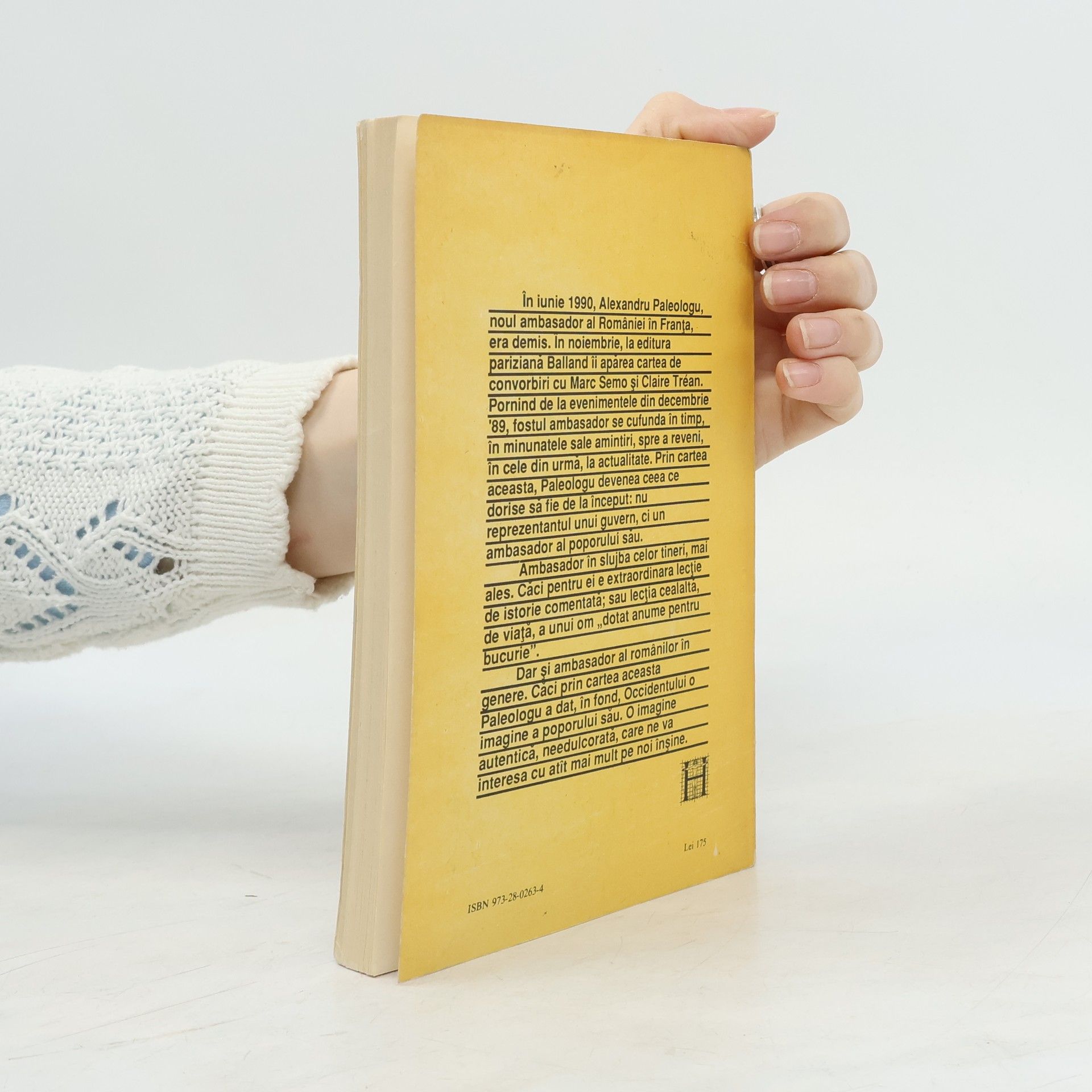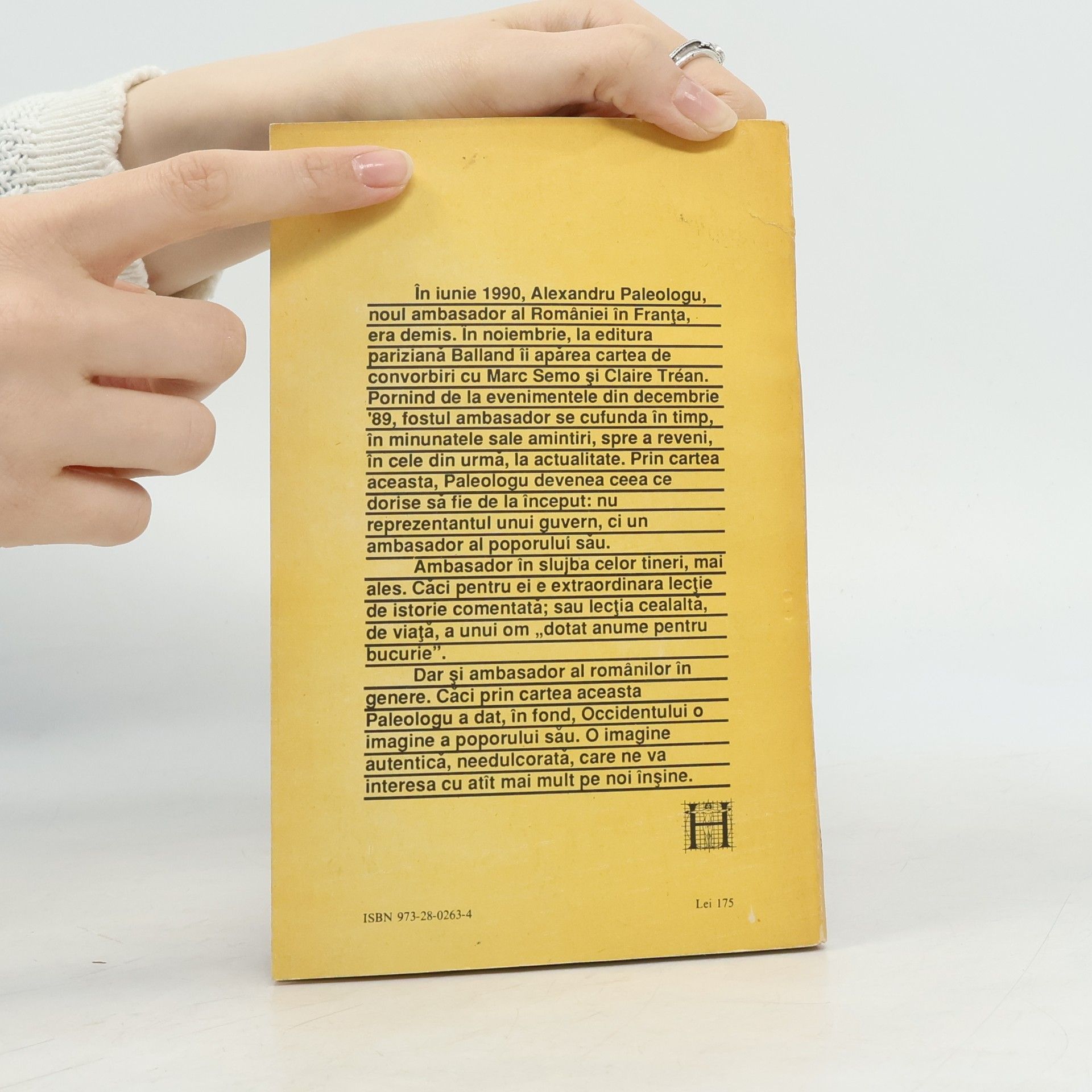 In iunie 1990, Alexandru Paleologu, noul ambasador al Romaniei in Franta, era demis. In noiembrie, la editura pariziana Balland ii aparea cartea de convorbiri cu Marc Semo si Claire Trean. Pornind de la evenimentele din decembrie '89, fostul ambasador se cufunda in timp, in minunatele sale amintiri, spre a reveni, in cele din urma, la actualitate. Prin cartea aceasta, Paleologu devenea ceea ce dorise sa fie de la inceput: nu reprezentantul unui guvern, ci un ambasador al poporului sau.Ambasador al celor tineri, mai ales. Caci pentru ei e extraordinara lectie de istorie comentata; sau lectia cealalta, de viata, a unui om „dotat anume pentru bucurie“.Dar si ambasador al romanilor in genere. Caci prin cartea aceasta Paleologu a dat, in fond, Occidentului o imagine a poporului sau. O imagine autentica, needulcorata, care ne va interesa cu atat mai mult pe noi insine.