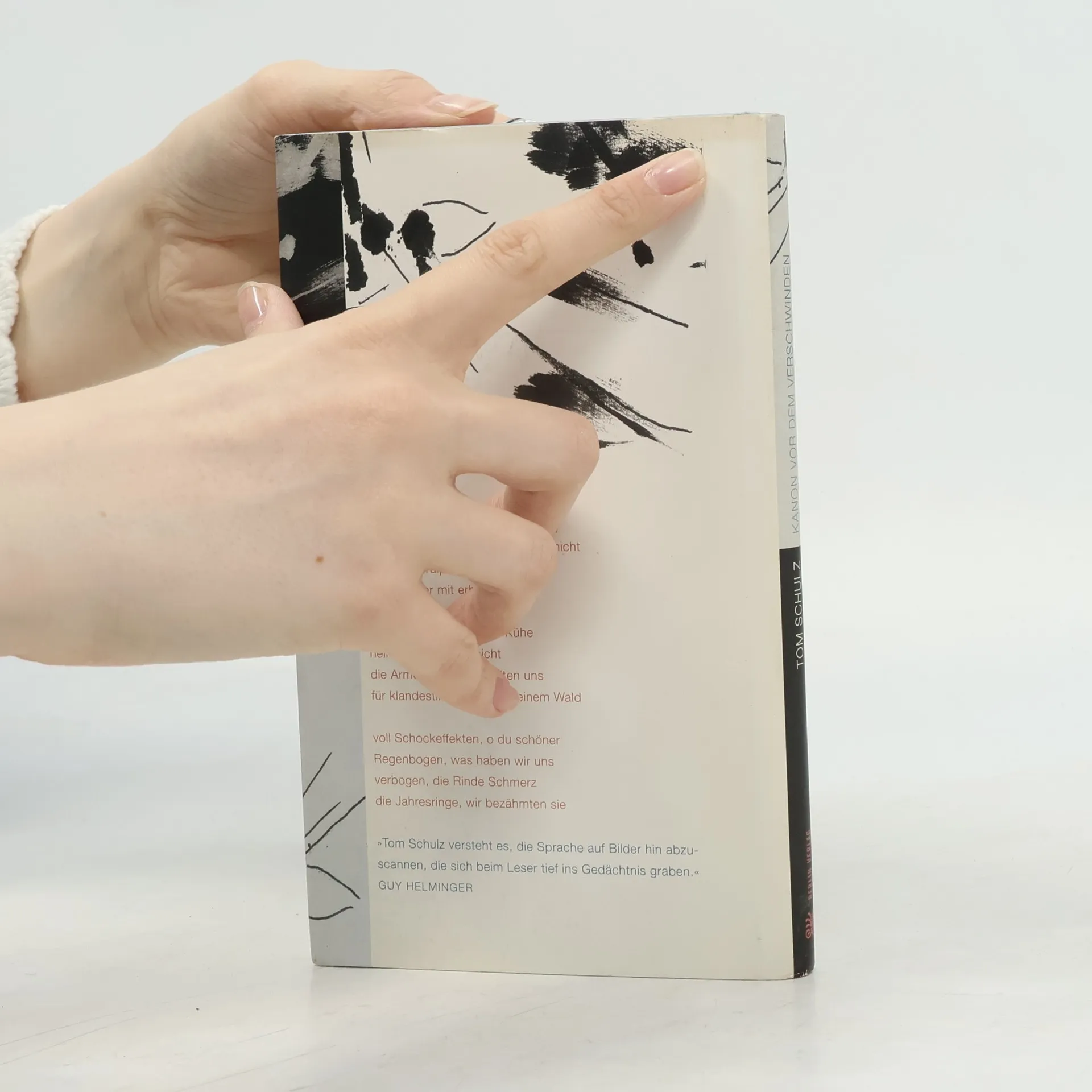 "Wir hatten den Bärlauch / gefangen, er war grün und schrie nicht" - zurück von seinen poetischen Streifzügen durch unsere Welt, breitet Tom Schulz in Kanon vor dem Verschwinden seine Beute, seine Schätze aus: Gedichte, die das ganze Spektrum der Tonlagen, die Könnerschaft dieses Lyrikers offenbaren. Er kann und will zum Glück nicht anders - mit Tom Schulz hat die Oberlausitz einen Lyriker hervorgebracht, aus dessen Gedichten eine bezwingende Notwendigkeit spricht. Jenseits jeder künstlerischen Attitüde setzt sich hier ein hochreflektiertes lyrisches Ich der Welt aus und erzählt davon in Bildern, die assoziative Fülle und präzise Beobachtung in sich vereinen. Tom Schulz beherrscht die unterschiedlichsten Tonlagen und setzt sie gezielt ein. Unerschrocken mischt er Bilderstakkato, gebrochenen Beat, kalauerndes Sprachspiel, aber auch zärtlich elegische Töne und verwandelt so die Wunden, Risse und Brüche, die er überall wahrnimmt, egal, ob er die Isarauen entlanggeht oder die Kastanienallee, in eine wilde Poesie, aus der vor allem eines spricht: der feste Glaube an die eigene Macht. Wie kritisch und skeptisch Tom Schulz diese Welt auch betrachtet, er findet - er kann nicht anders - fast wider Willen noch im trostlosesten Brachland eine leuchtend blaue Blume.