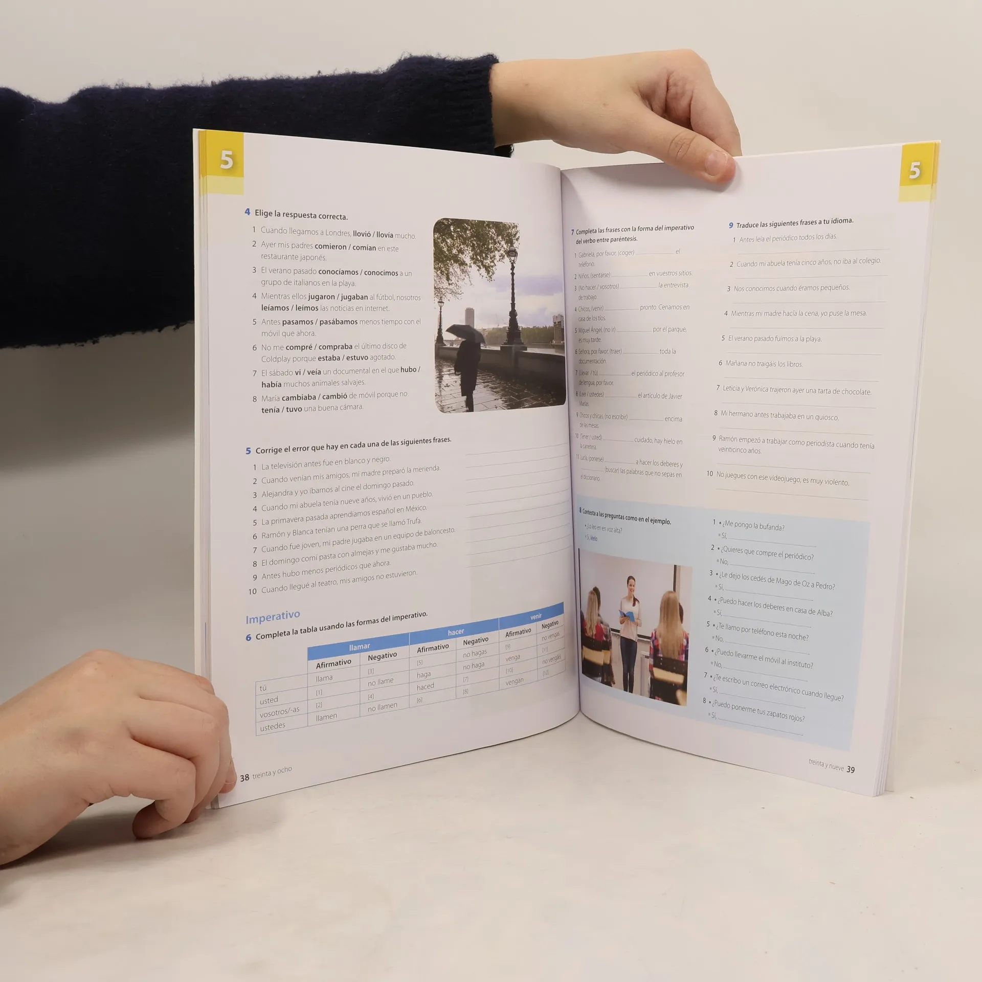 Dirigido a estudiantes de enseñanza secundaria de nivel B1.1 del MCER. Nueva edición actualizada y renovada con una propuesta didáctica coherente, entretenida, ágil y motivadora que sigue una progresión lógica de presentación y práctica de la lengua. Nueva maqueta y actualización de los contenidos y de algunas ilustraciones así como nuevas fotografías. Licencia digital con los contenidos, las audiciones y cientos de ejercicios interactivos incluida en el libro del alumno y el cuaderno de ejercicios. Dividido en 9 unidades. Ejercicios prácticos de vocabulario, gramática, comunicación y destrezas. Se puede utilizar en clase y en casa. Al final del cuaderno están las transcripciones de los audios. El cuaderno de ejercicios digital, en formato HTLM con diseño adaptativo para trabajar con distintos dispositivos. Los audios se encuentran en el cuaderno digital y pueden ser oídos o descargados ele.sgel.es/descargas.asp. Vídeos en YouTube, con escenas cotidianas y referencias culturales e interculturales. Un capítulo cada dos unidades Guía del profesor ampliada con propuestas didácticas para el libro y los vídeos, actividades extra y fichas fotocopiables para los estudiantes. Una unidad de muestra www.sgel.es/ele