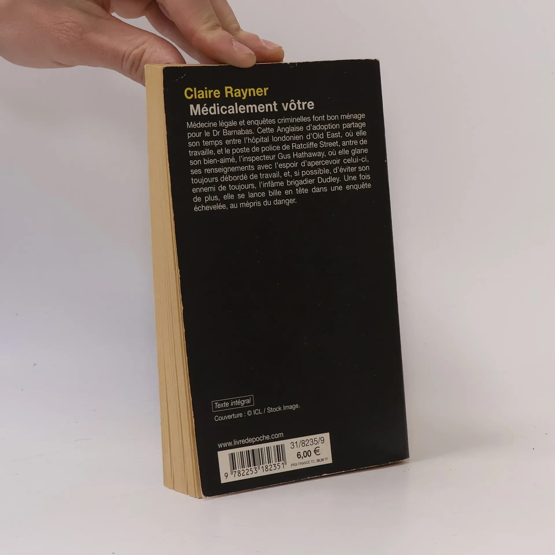 Médecine légale et enquêtes criminelles font bon ménage pour le Dr Barnabas. Cette Anglaise d'adoption partage son temps entre l'hôpital londonien d'Old East, où elle travaille, et le poste de police de Ratcliffe Street, antre de son bien-aimé, l'inspecteur Gus Hathaway, où elle glane ses renseignements avec l'espoir d'apercevoir celui-ci, toujours débordé de travail, et, si possible, d'éviter son ennemi de toujours, l'infâme brigadier Dudley. Une fois de plus, elle se lance bille en tête dans une enquête échevelée, au mépris du danger...