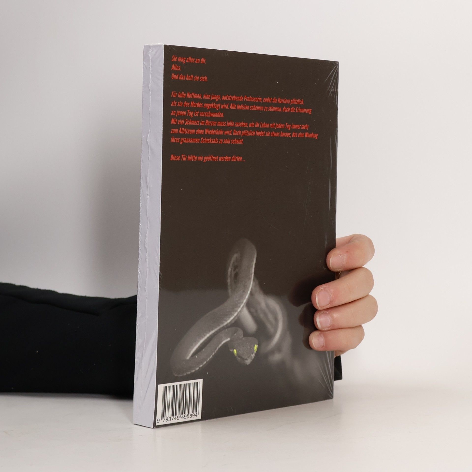 Sie mag alles an dir. Alles. Und das holt sie sich. Berlin. Für Julia Hoffman, eine junge, aufstrebende Professorin, endet die Karriere plötzlich, als sie des Mordes angeklagt wird. Alle Indizien scheinen zu stimmen, doch die Erinnerung an jenen Tag ist verschwunden. Mit viel Schmerz im Herzen muss Julia zusehen, wie ihr Leben mit jedem Tag immer mehr zum Albtraum ohne Wiederkehr wird. Doch plötzlich findet sie etwas heraus, das eine Wendung ihres grausamen Schicksals zu sein scheint. Diese Tür hätte nie geöffnet werden dürfen ...