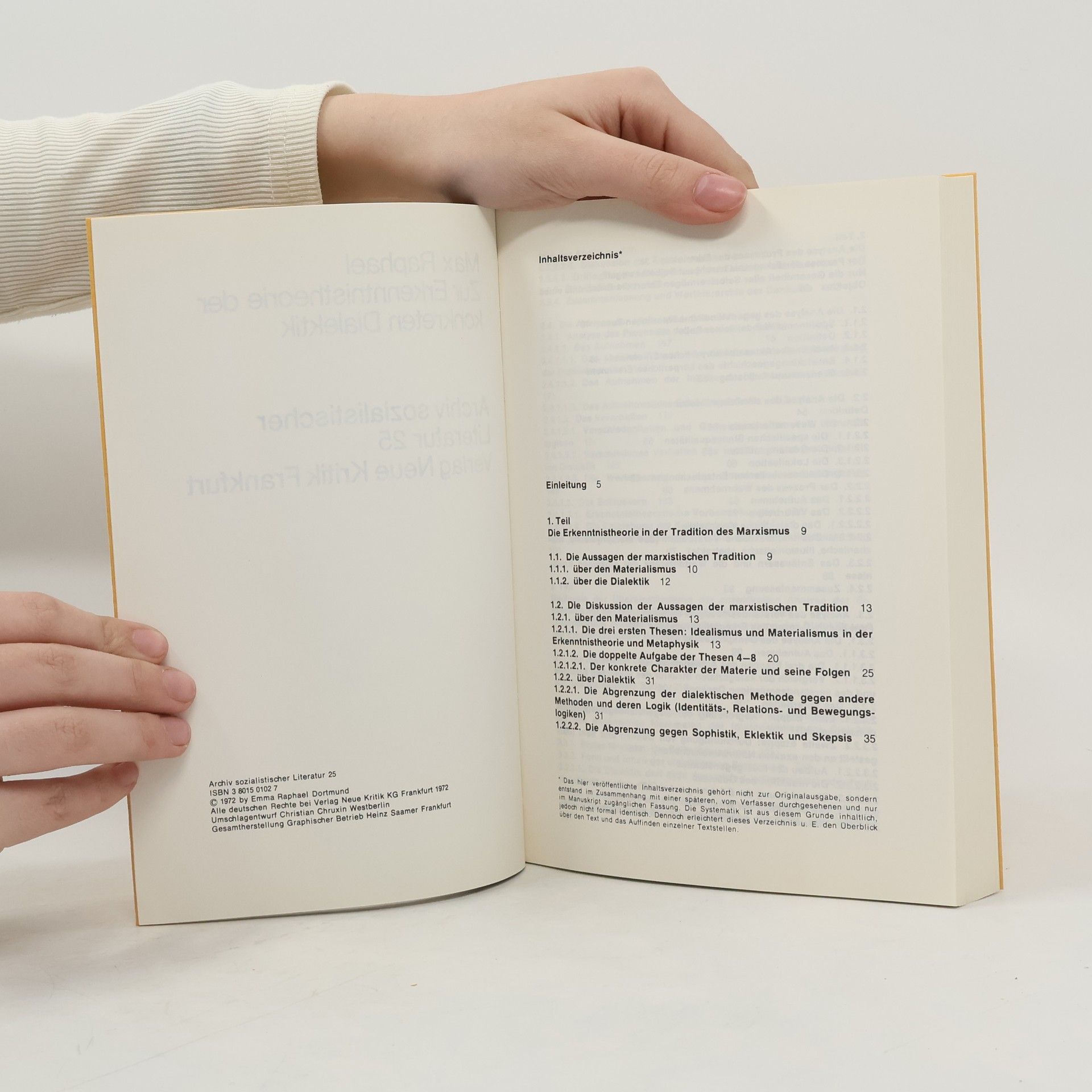 Zur Erkenntnistheorie der konkreten Dialektik. Archiv sozialistischer Literatur 25, Max Raphael