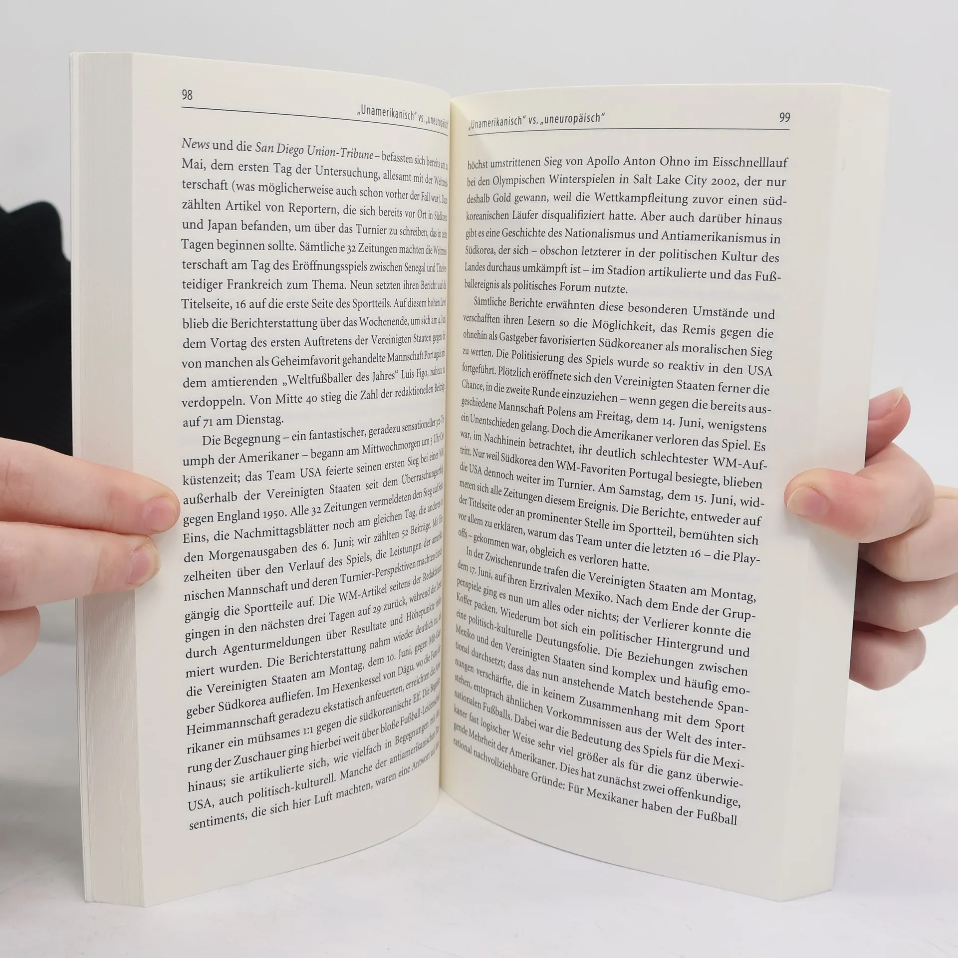 Seit David Beckham ankündigte, als hochdotierter Entwicklungshelfer in den amerikanischen Soccer zu wechseln, sind die unterschiedlichen Fußballkulturen diesseits und jenseits des Atlantiks wieder ein Gesprächsstoff. Die in den USA lehrenden Professoren Andrei S. Markovits und Jens Rensmann beleuchten diese Thematik in klugen Essays. Dabei geht es u. a. um die Stellung des Fußballs in der US-amerikanischen Gesellschaft, um den Wandel von Sportkulturen im globalisierten Zeitalter, um jüdische Identitäten sowie um Männlichkeitskulte hüben wie drüben. Ein intelligentes Sportbuch, das Fuß- und andere Ballspiele aus ungewöhnlichen Perspektiven betrachtet.