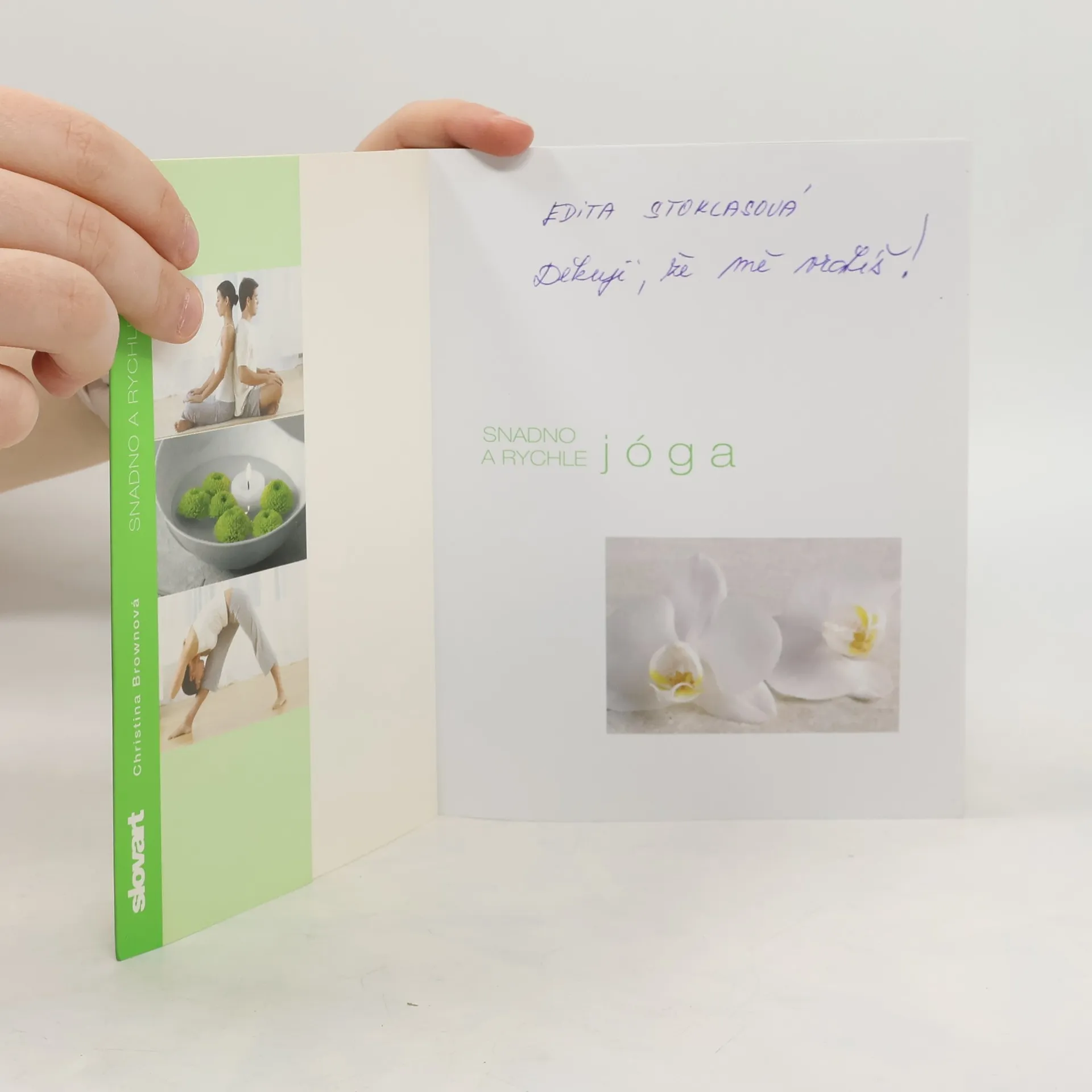 V knize Jóga snadno a rychle přináší uznávaná instruktorka Christina Brownová řadu 5minutových sestav, jež může každý ihned zařadit do svého života - kdykoli a kdekoli. Začněte svůj den ranním aktivátorem, zacvičte si v práci u stolu a uvolněte se v parku. Nebo si cvičení zvolte podle toho, jak působí na tělo a mysl - můžete si vybrat mezi cviky protistresovými, povzbuzovacími a pro dobrou náladu. Skutečně snadná a rychlá jóga. Zregenerujte se, dobijte baterky a posilte své zdraví a kondici jednoduchými pětiminutovými sestavami od uznávané lektorky jógy Christiny Brownové. Cvičení popsaná srozumitelně krok za krokem můžete provádět bez ohledu na svůj věk a tělesnou kondici i v případě, že jste jógu nikdy předtím necvičili. Naučte se sestavy šité na míru každodennímu životu - včetně ranní vzpruhy, poledního povznesení, večera bez stresu nebo cviku před odchodem na večírek. Objevte pozice, které můžete provádět bez ohledu na to, kde právě jste - například v parku, za stolem, v letadle nebo v posteli těsně před usnutím.