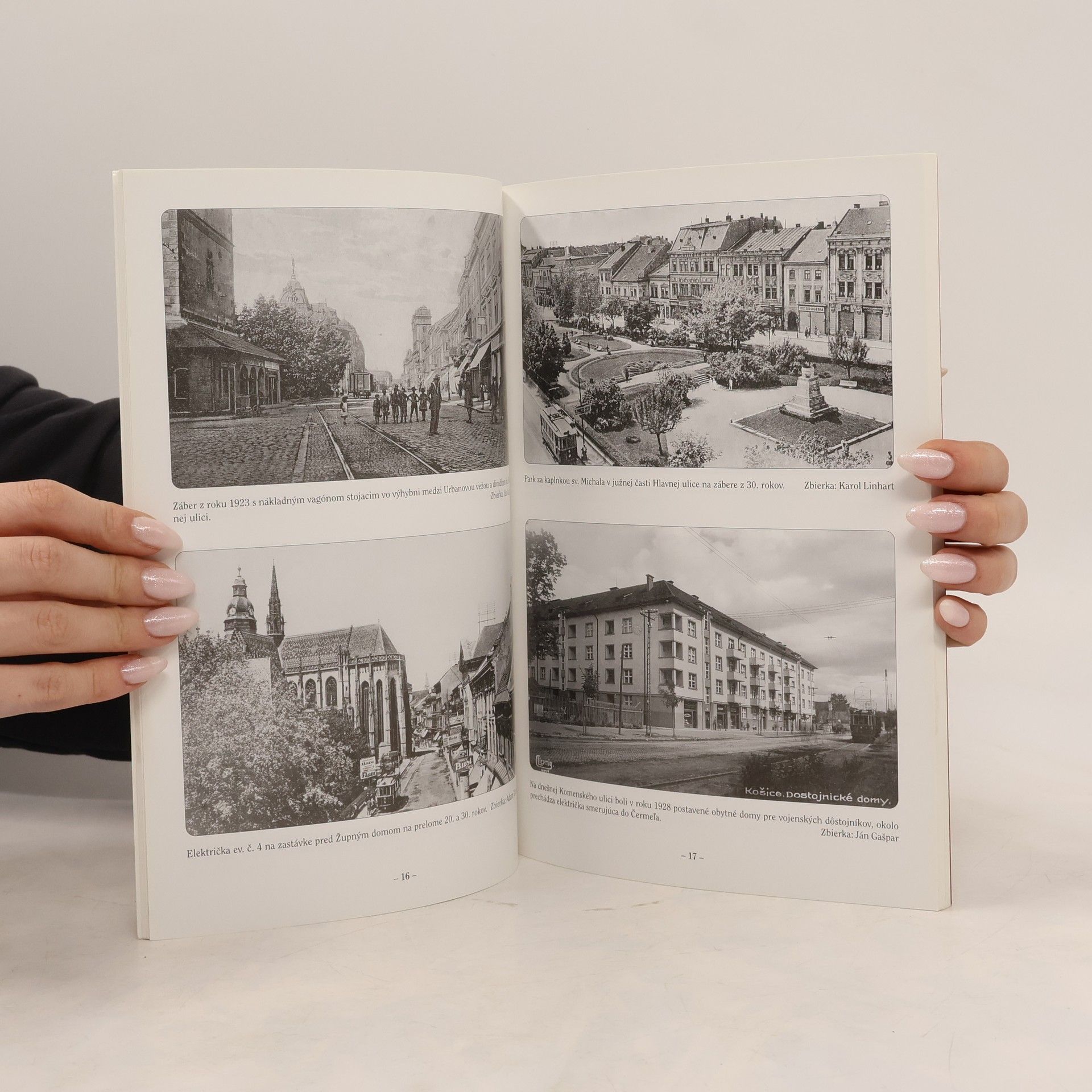 Výběr dobových pohlednic dokumentuje obrazem vývoj městských doprav v Košicích a Bratislavě. Přehled doplňují tratě Tatranské elektrické železnice a elektrická dráha Trenčianská Teplá – Trenčianské Teplice. Krátký text ke každé samostatné oblasti popisuje stručnou historii vývoje a provozu. Texty pod pohlednicemi upřesňují datum pořízení a místo.