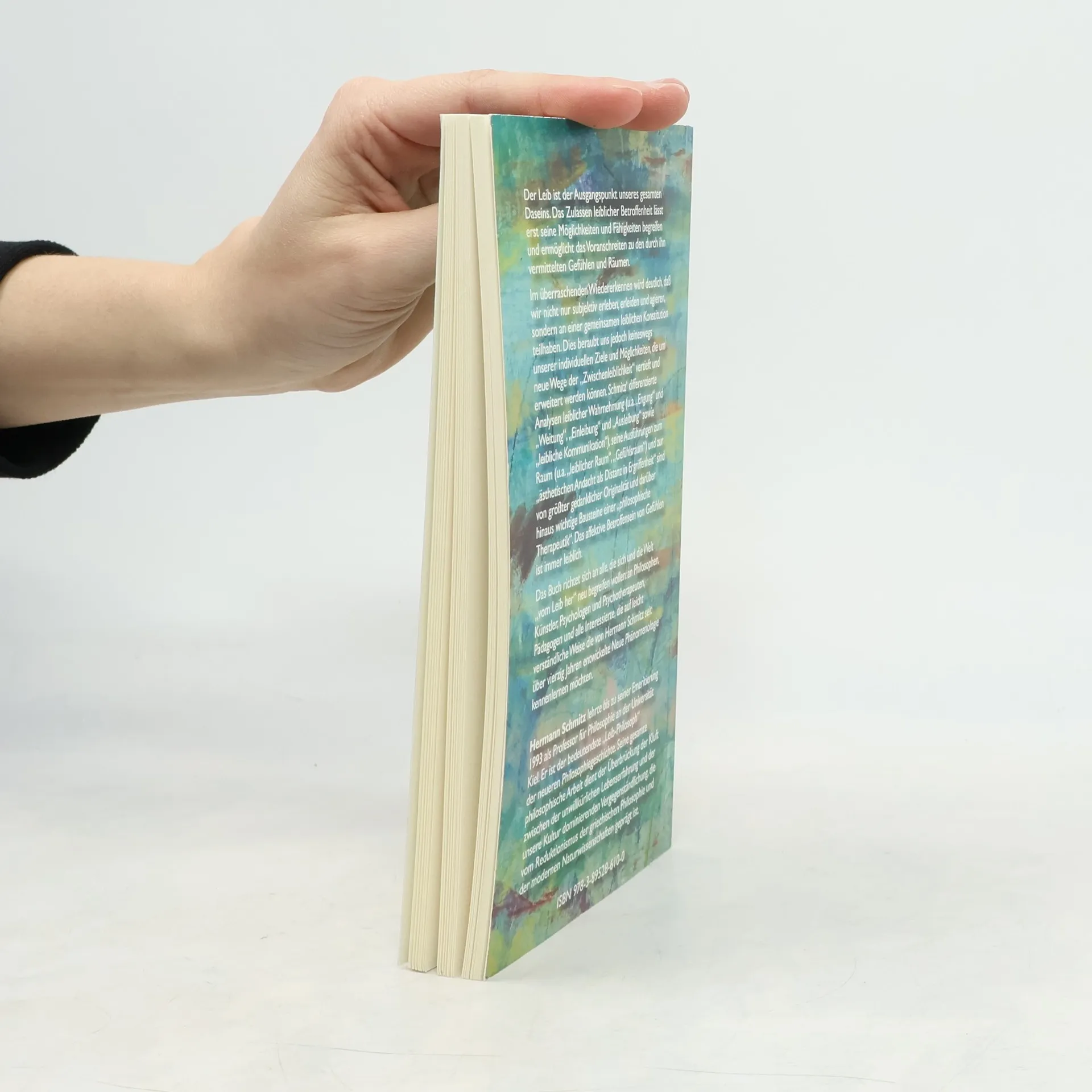 Der Leib ist der Ausgangspunkt unseres gesamten Daseins. Das Zulassen leiblicher Betroffenheit lässt erst seine Möglichkeiten und Fähigkeiten begreifen und ermöglicht das Voranschreiten zu den durch ihn vermittelten Gefühlen und Räumen. Im überraschenden Wiedererkennen wird deutlich, daß wir nicht nur subjektiv erleben, erleiden und agieren, sondern an einer gemeinsamen leiblichen Konstitution teilhaben. Dies beraubt uns jedoch keineswegs unserer individuellen Ziele und Möglichkeiten, die um neue Wege der „Zwischenleiblichkeit“ vertieft und erweitert werden können. Schmitz‘ differenzierte Analysen leiblicher Wahrnehmung (u. a. „Engung“ und „Weitung“, „Einleibung“ und „Ausleibung“ sowie „leibliche Kommunikation“), seine Ausführungen zum Raum (u. a. „leiblicher Raum“, „Gefühlsraum“) und zur „ästhetischen Andacht als Distanz in Ergriffenheit“ sind von größter gedanklicher Originalität und darüber hinaus wichtige Bausteine einer „philosophischen Therapeutik“. Das affektive Betroffensein von Gefühlen ist immer leiblich. Das Buch richtet sich an alle, die sich und die Welt „vom Leib her“ neu begreifen wollen: an Philosophen, Künstler, Psychologen und Psychotherapeuten, Pädagogen und alle Interessierte, die auf leicht verständliche Weise die von Hermann Schmitz seit über vierzig Jahren entwickelte Neue Phänomenologie kennenlernen möchten.